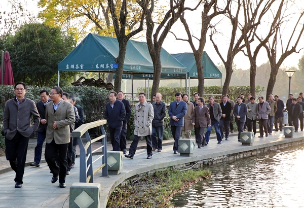 12月1日下午,省委党校2014年第四期领导干部进修一班学员来beat365官网考察。校党委书记宣勇陪同考察。校党委副书记方伟、余杰,副校长王自勇、鲍滨福等分别参加相关考察活动。