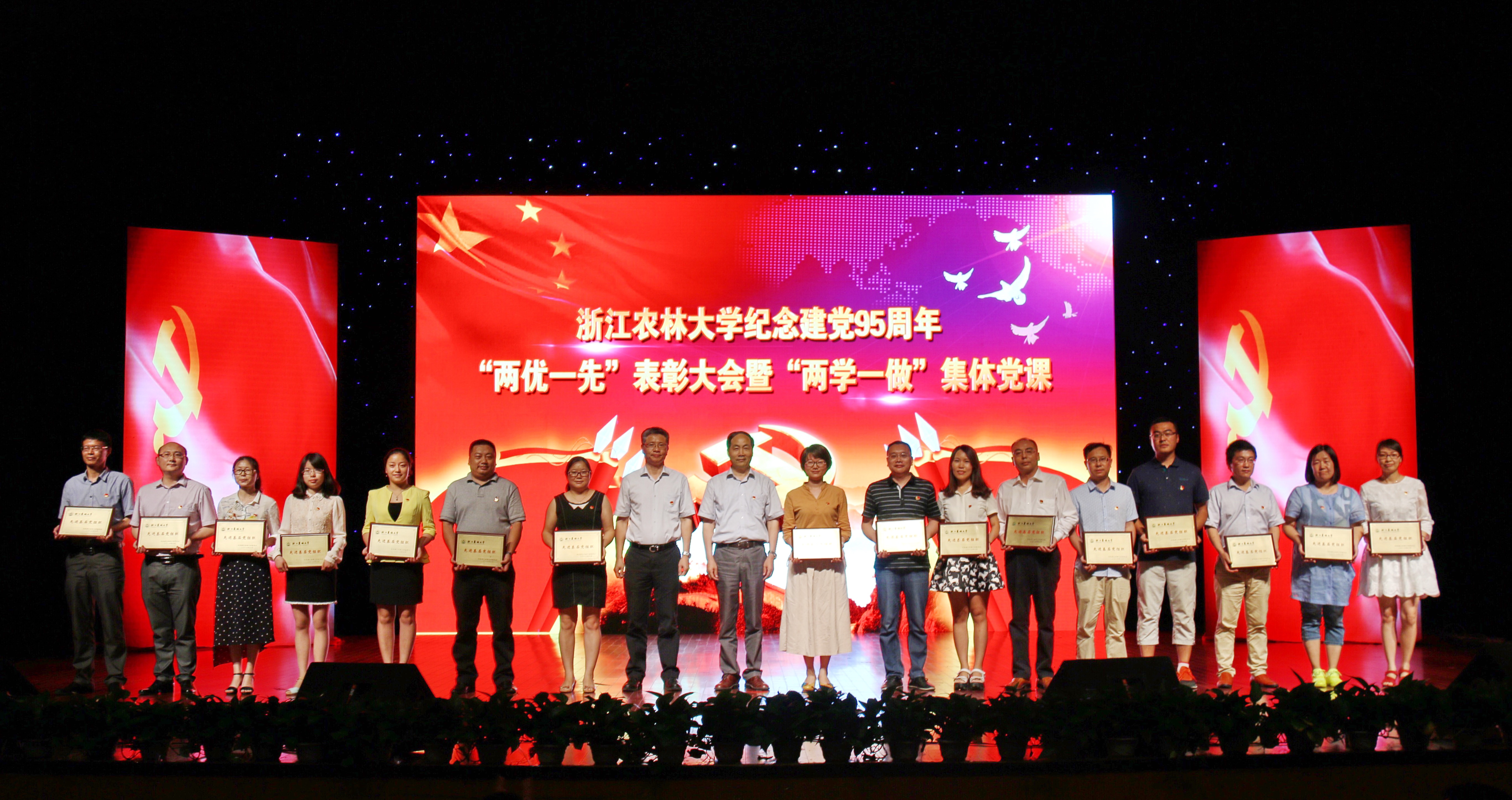 6月21日晚,beat365官网庆祝建党95周年“两优一先”表彰大会暨“两学一做”集体党课在东湖校区隆重举行。校党政班子成员宣勇、周国模、方伟、史永安、钟平、沈月琴、胡祖吉、童晓晖出席。