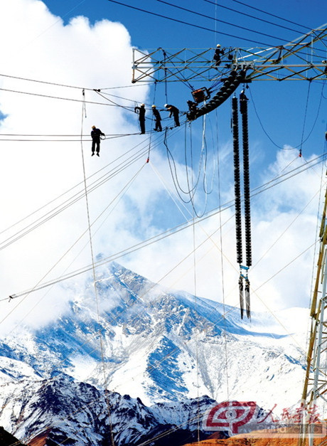 “电力天路”继青藏公路、青藏铁路之后,在青藏大地上再次横空出世。数千座壮士般的铁塔高高矗立,数万丈明亮的银丝划出优美的弧线。正是这雄壮与妩媚,点亮万千“藏家灯火”。2011年12月9日,青藏电力联网工程正式投入试运行。强劲而稳定的电流直达拉萨,西藏电网与西北电网紧密连接,中国内地电网实现全面互联,根本上改变了西藏缺电的局面。