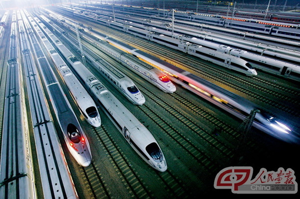 武汉,和谐号CRH列车专用维护机务段。中国铁路事业迎来了史无前例的发展机遇,成为中国历史上政府对铁路投资最多、建成规模最大、建设水平最高、创新成果最明显的时期。其中,高速铁路从无到有,总里程跃居世界第一,成为展示中国改革发展新成果的“国家名片”。