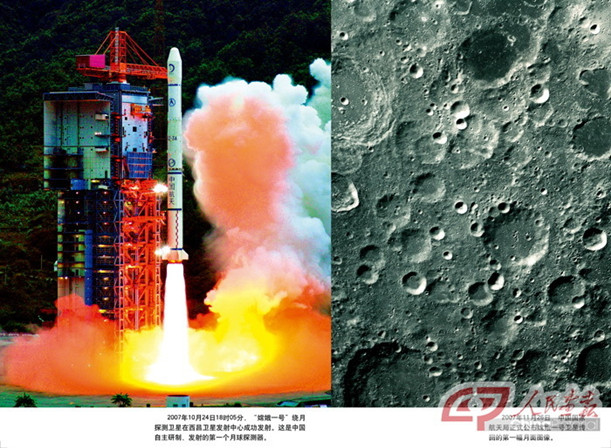 2007 年10月24日18 时05分,“嫦娥一号”绕月探测卫星在西昌卫星发射中心成功发射,这是中国自主研制、发射的第一个月球探测器。2007年11月26日,中国国家航天局正式公布嫦娥一号卫星传回的第一幅月球图像。