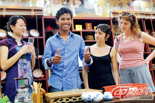 2012年6月30日,法国格勒诺布尔第二大学孔子学院的14名法国学生在湖北经济学院茶酒文化实验室学习茶文化。从2004年开办第一家孔子学院至今,中国已在100多个国家和地区开设了350多所孔子学院和500多个孔子课堂,注册学员达到50多万人,这是中国教育系统第一次成建制、大规模走出去,成为讲述中国故事的又一个窗口和平台——孔子学院和孔子课堂拉近了中外院校的距离,也为学校发展创造了条件。