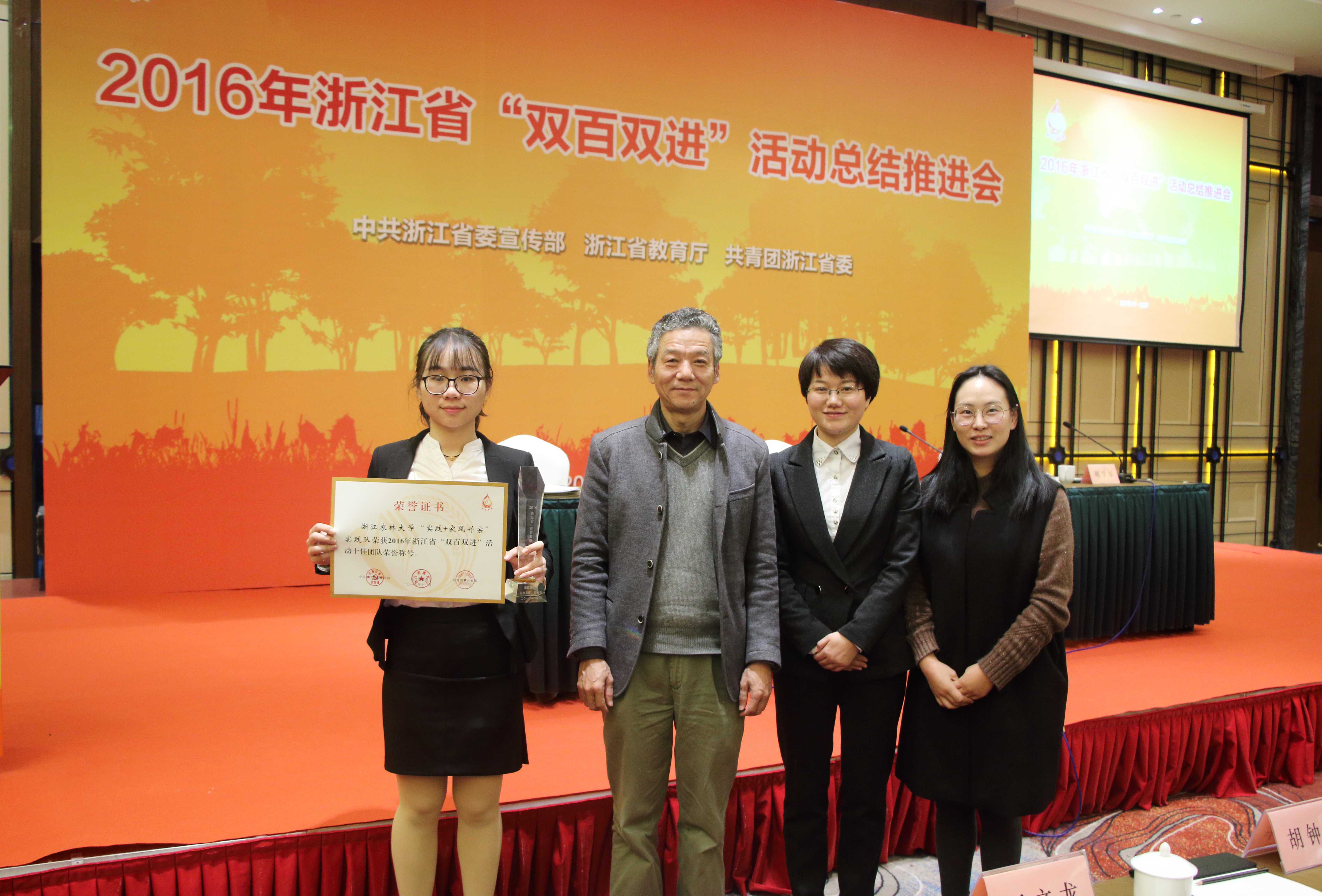 11月30日,由省委宣传部、省教育厅、团省委联合举办的浙江省2016年“双百双进”活动总结推进会在杭举行,beat365官网“家风·寻踪”大学生暑期社会实践团获得“十佳团队”荣誉称号。副校长王自勇受邀参加会议。