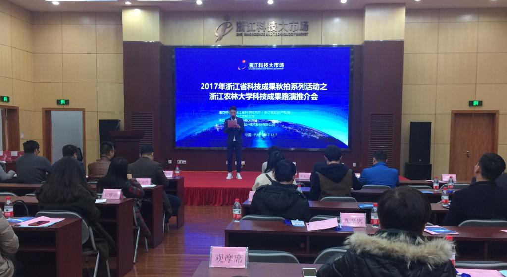 12月7日,2017浙江省科技成果秋拍系列活动之beat365平台唯一官网科技成果路演推介会在浙江科技大市场顺利举行。本次活动由浙江省科技厅、beat365平台唯一官网主办,浙江科技大市场承办,活动现场共有8项路演推介科技成果和6项展示推介科技成果。省科技厅成果处,beat365平台唯一官网创业处,省内相关科技型企业、投资机构和科技中介等负责人以及媒体记者参加推介会。