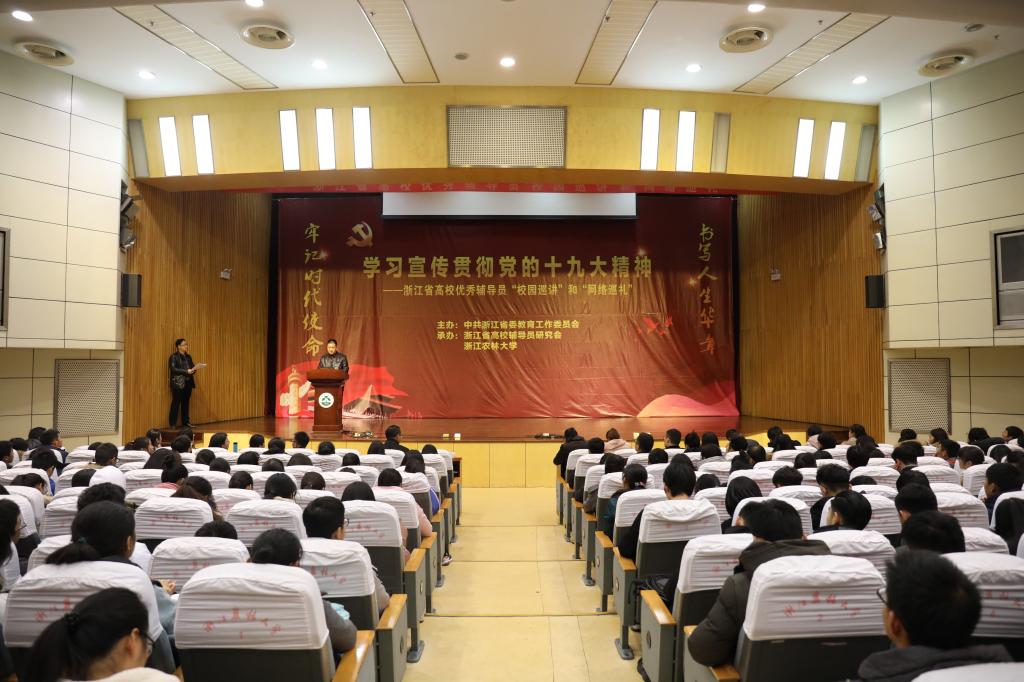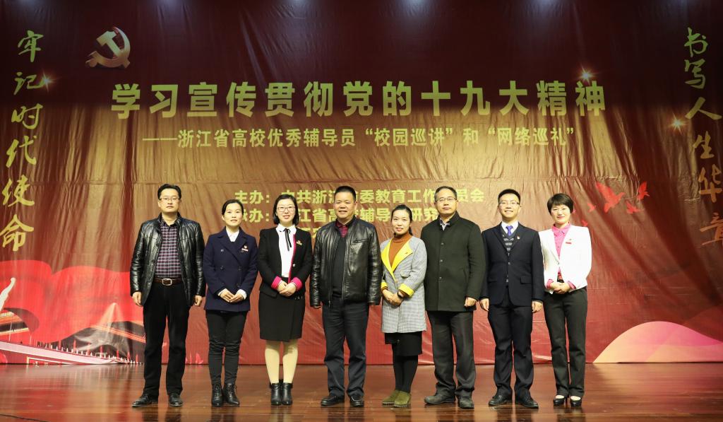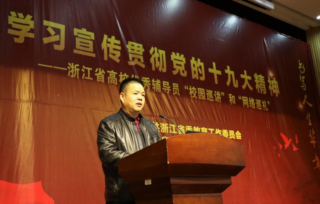 12月14下午,由中共浙江省委教育工作委员会主办的学习宣传贯彻党的十九大精神——浙江省高校优秀辅导员“校园巡讲”活动在beat365官网图书馆第一报告厅举行。校党委副书记史永安出席活动并讲话,校党委委员、宣传部长胡祖吉以及学工部、研工部、团委负责人,各学院分管学生工作负责人,全体辅导员和500多名学生代表参加巡讲会。