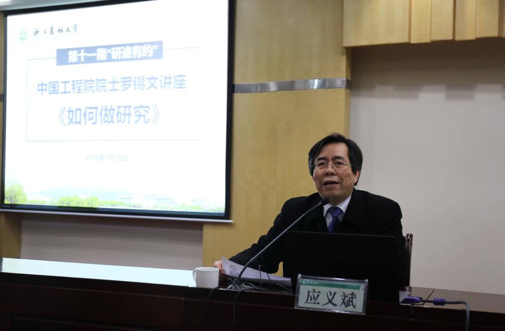 1月15日上午,中国工程院院士罗锡文应邀走进“研途有约”,为200多名研究生作题为“怎样做研究”的学术报告。报告会由校长应义斌主持。