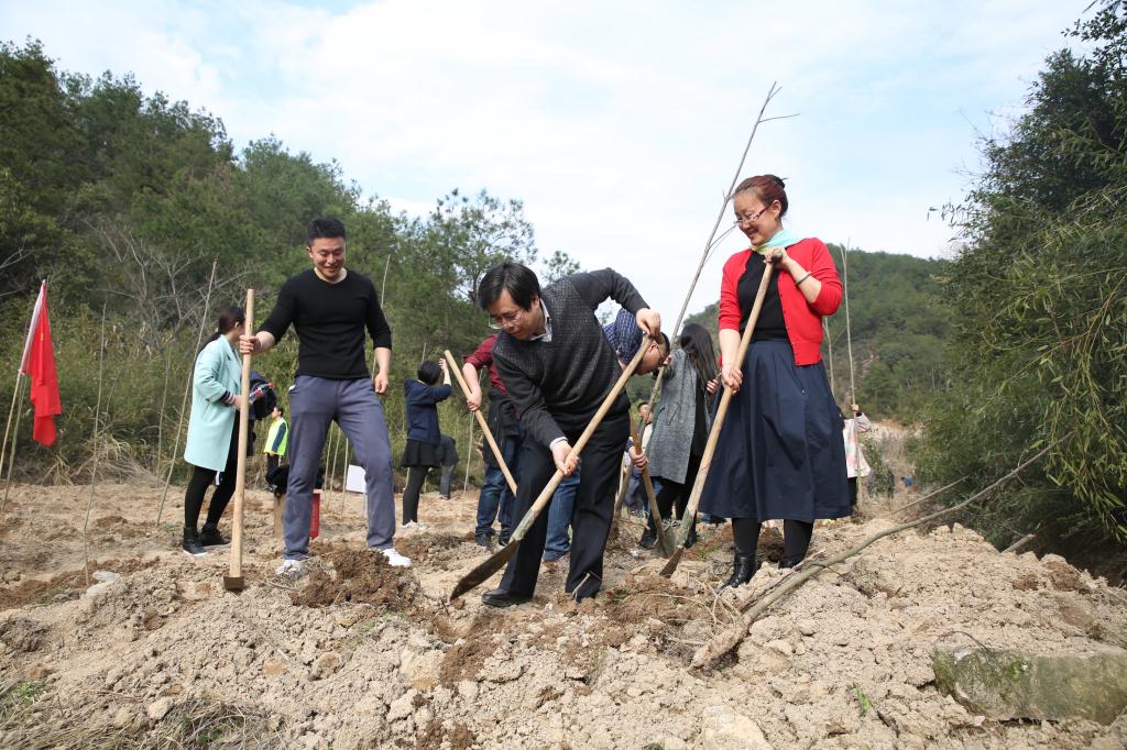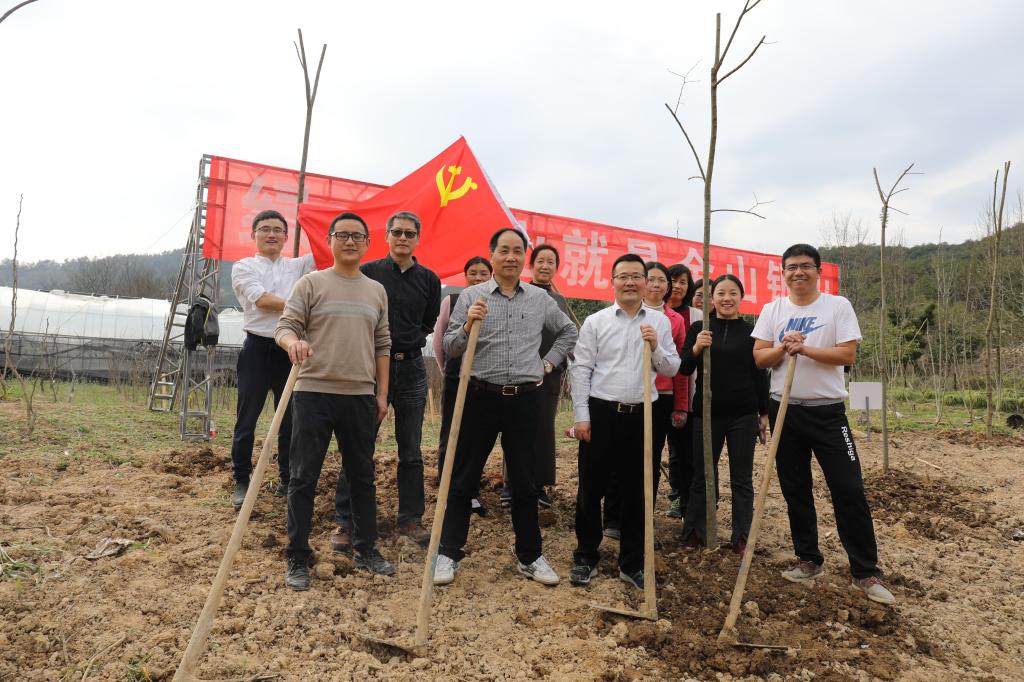 校党政班子成员周国模、应义斌、史永安、王自勇、金佩华、沈希、胡祖吉、童晓晖等与师生代表、消防官兵一起,在东湖校区学生公寓B9东北侧添种一片新绿。大家挥锹铲土,扶苗填坑,踏土夯苗……,不到2小时,近千株天台鹅耳枥、细果秤锤树、美国山核桃、华臻等成排而立。