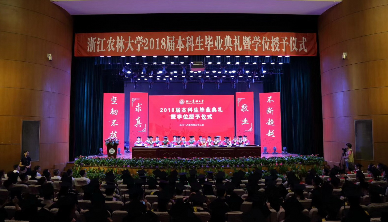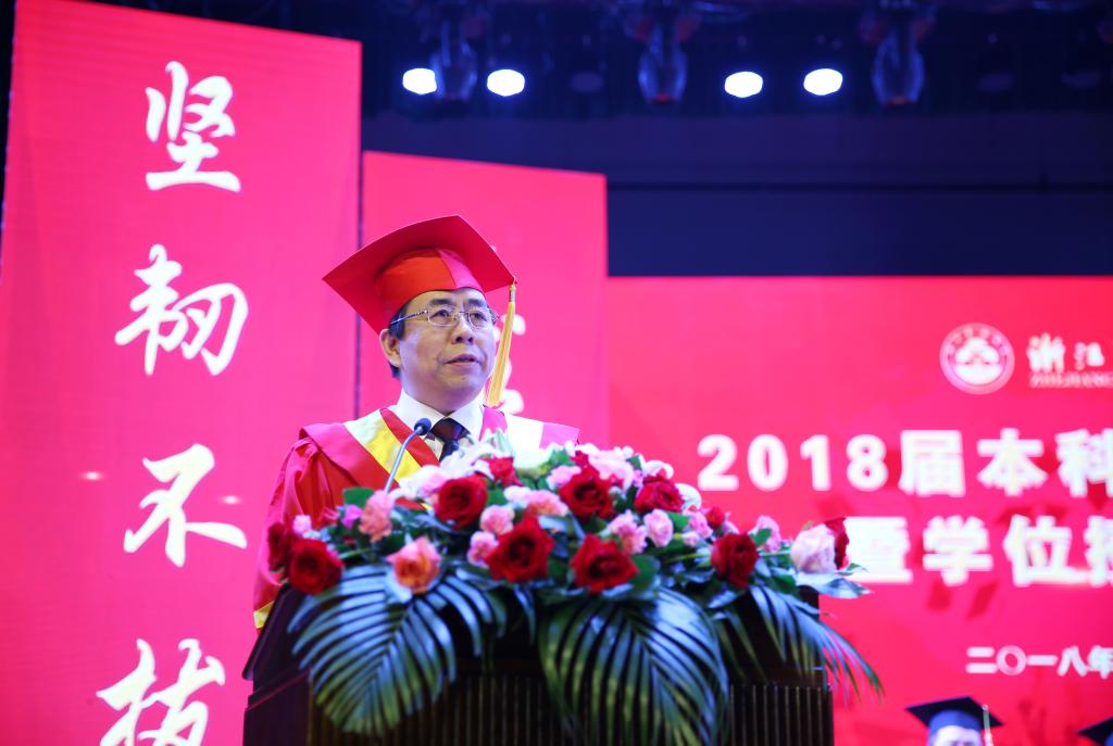 流年似水,光阴荏苒,毕业的钟声再次敲响。6月22日,学校隆重举行2018届本科生毕业典礼暨学位授予仪式。校党委书记周国模,校长应义斌,副校长王自勇、金佩华、沈月琴,校党委委员、宣传部部长胡祖吉,校党委委员、组织部部长童晓晖等出席典礼,典礼由校党委副书记史永安主持。