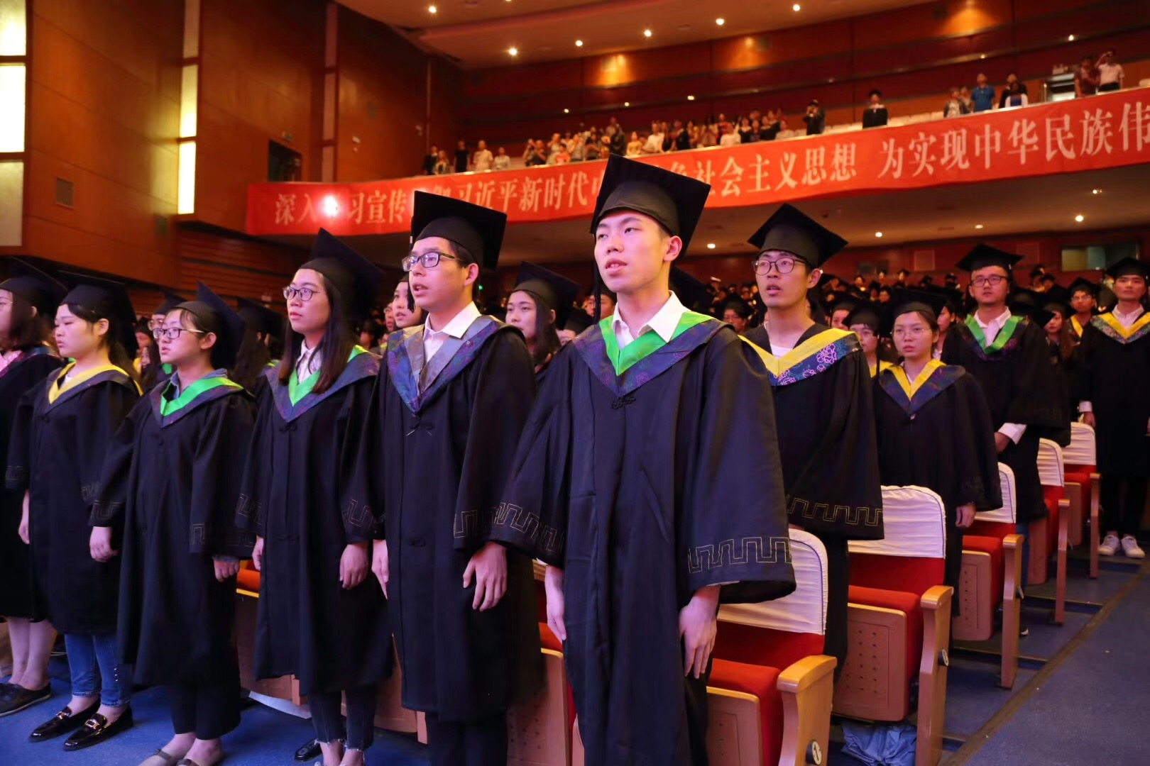 毕业典礼在庄严的国歌声中开始。