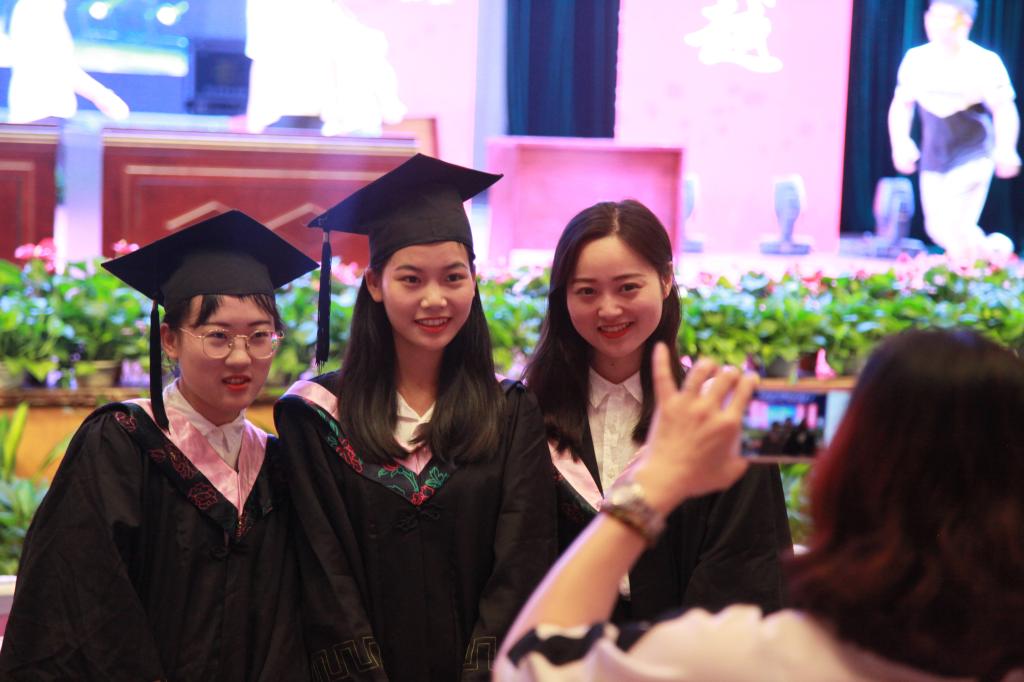 在音乐的伴奏下,3790名毕业生按学院、班级依次上台,进行学士学位授予仪式。校领导为每一位毕业生颁发学位证书、扶正流苏,并与开启未来新征程的2018届毕业生合影留念。