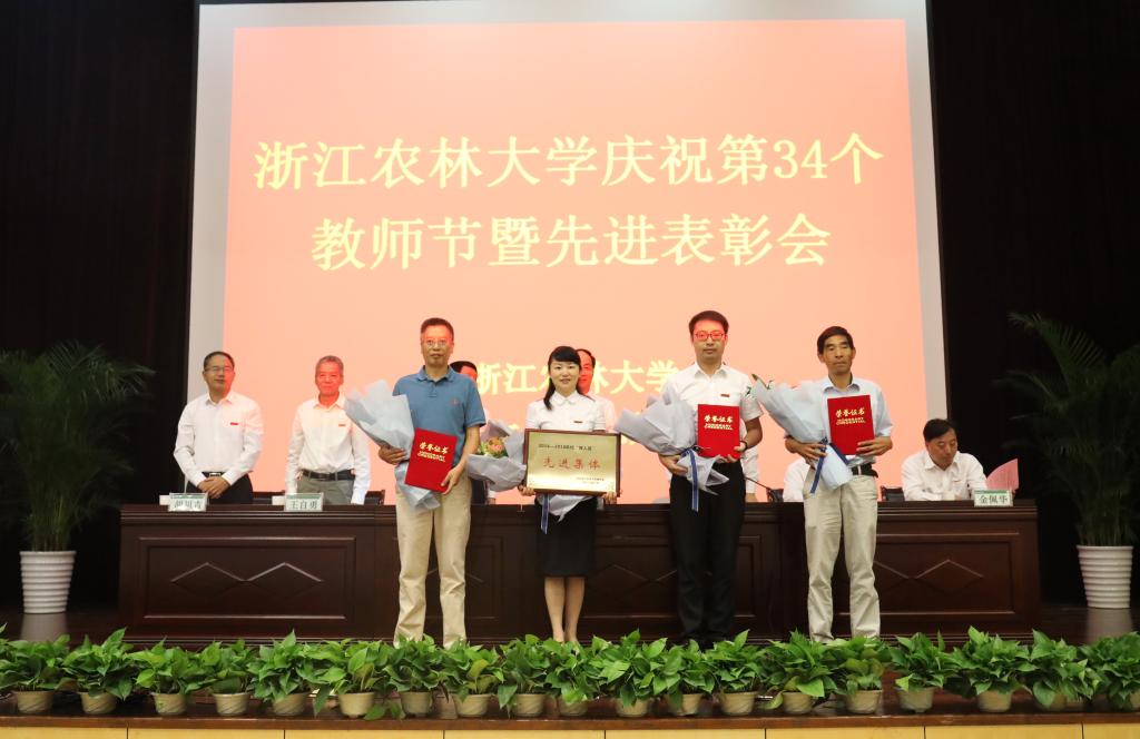 9月10日下午,学校庆祝第34个教师节暨先进表彰会在东湖校区举行。校党政班子成员周国模、应义斌、史永安、王自勇、金佩华、胡祖吉出席表彰大会,并为受表彰的集体和个人颁奖。会议由校党委副书记方伟主持。