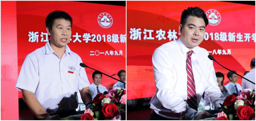 教师代表、工程学院孙庆丰老师,校友代表、农业与食品科学学院植物保护专业2010届毕业生林高昂,在校生代表、园林学院研究生施健健同学,2018级新生代表、文法学院本科新生舒一诺同学分别发言。