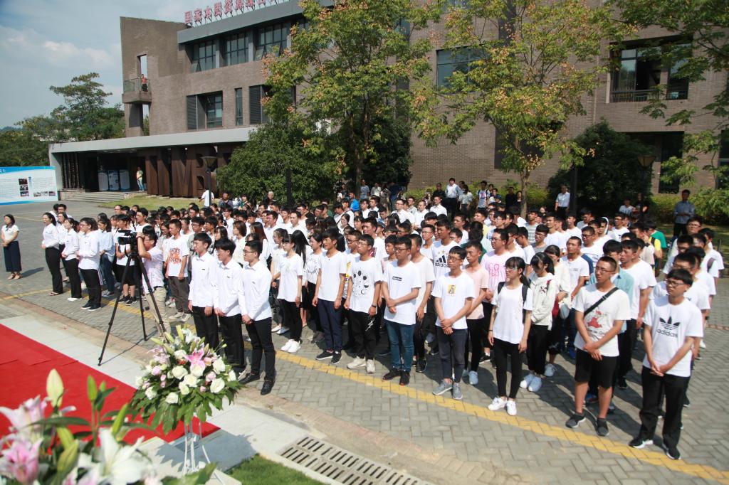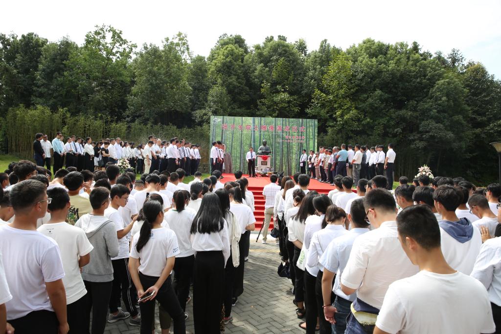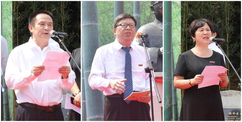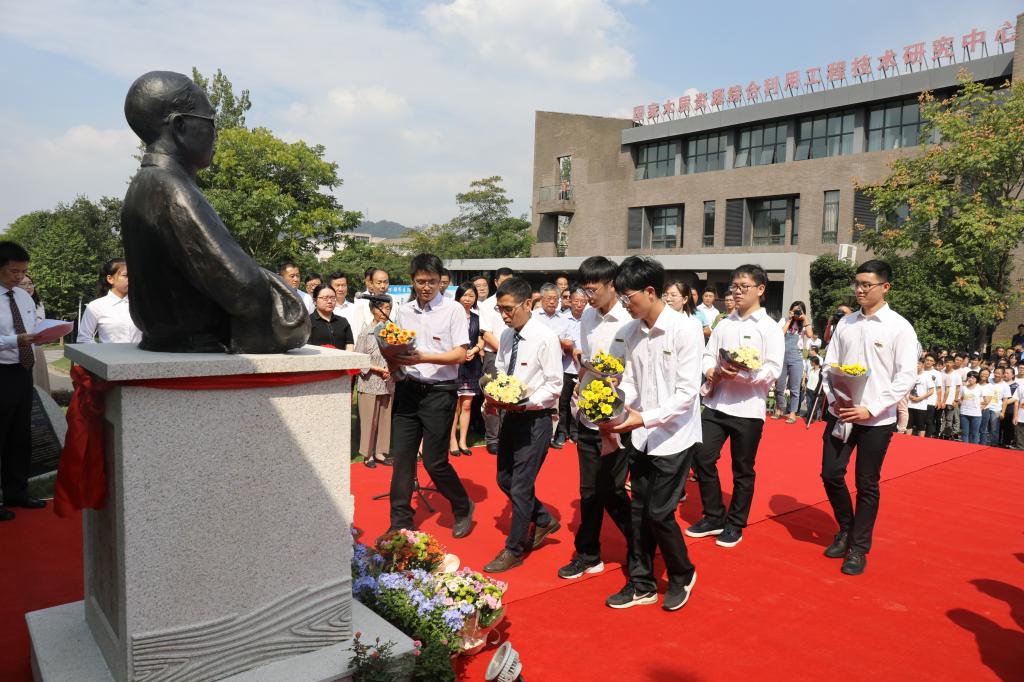 周国模、应义斌、陈敬佑、张院士之子张宏、捐赠企业代表顾水祥共同为张齐生院士雕像揭幕。张院士家属代表和学生代表先后向张院士雕像敬献花篮,全体在场人员向雕像行礼致敬。