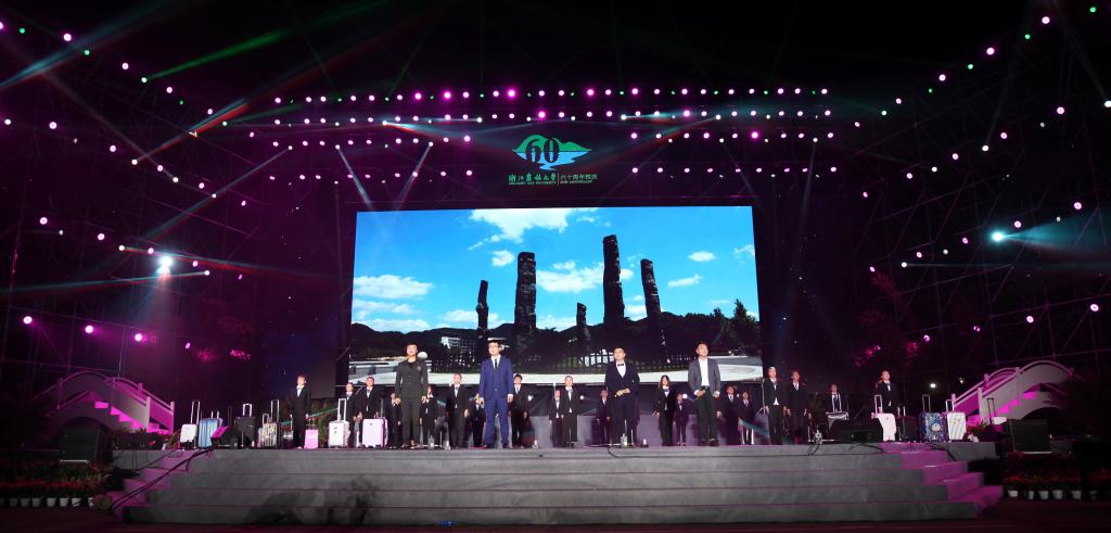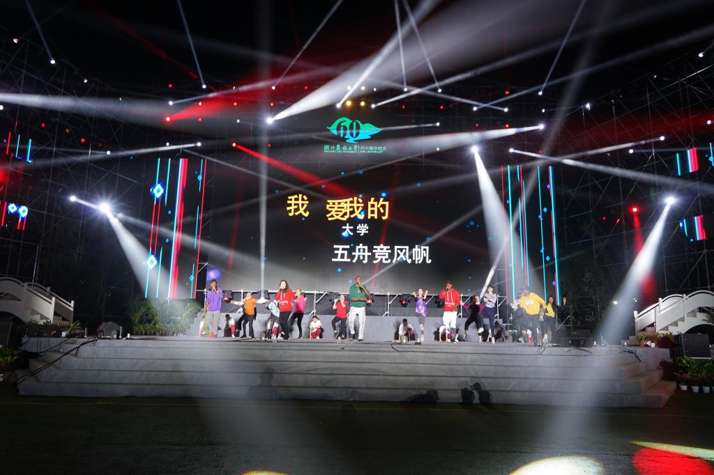 六秩谱华章,聚力再启航。10月20日晚7点整,“‘亲山恋水’——beat365平台唯一官网建校60周年文艺晚会”在东湖校区如期举行。校党政班子成员、全体中层干部以及校友代表、师生代表、社会各界嘉宾近万人观看了演出。