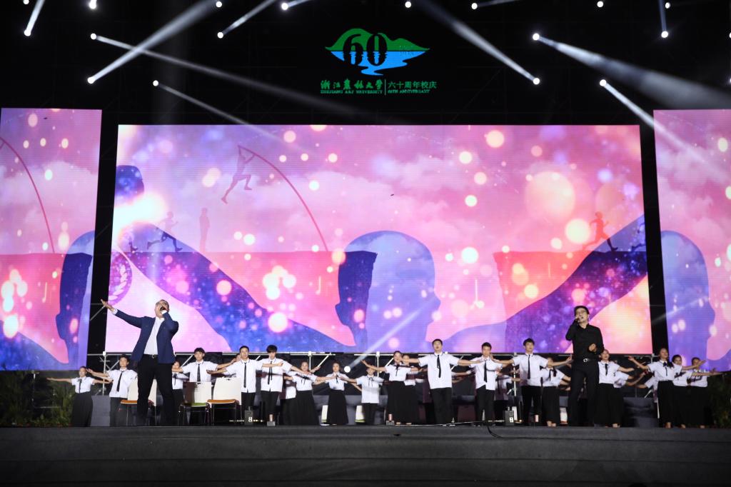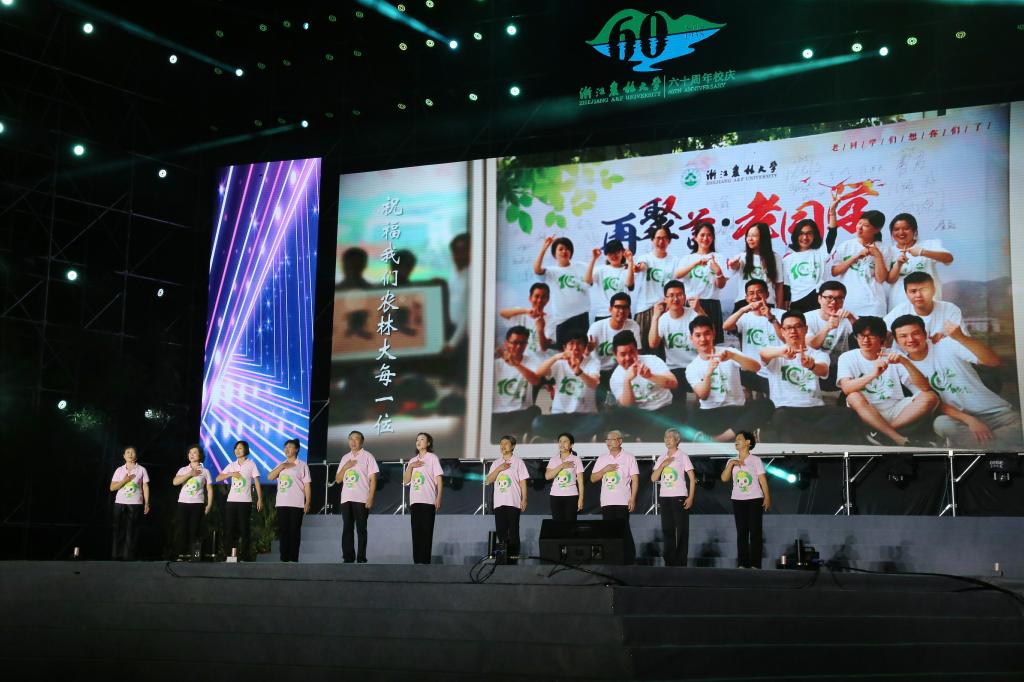 此次晚会筹备近半年,校领导高度重视,相关部门通力合作,以师生、校友组成的演出团队用不懈的努力、辛勤的汗水、无私的付出,为浙农林建校60周年献上了一份厚礼。