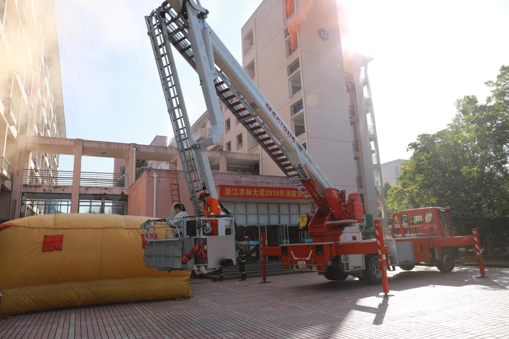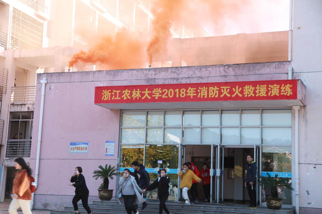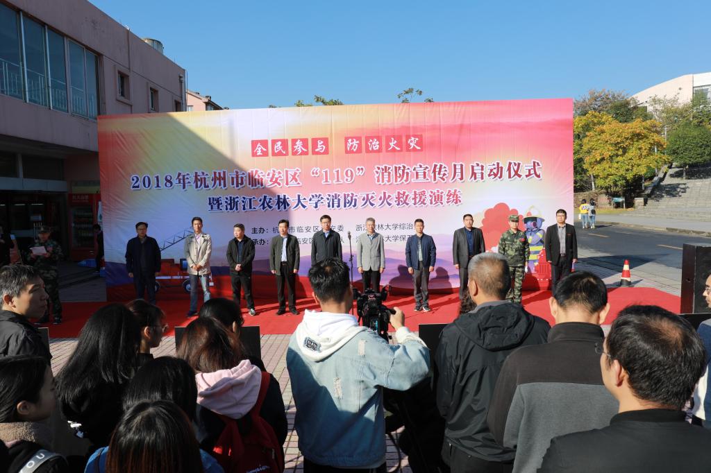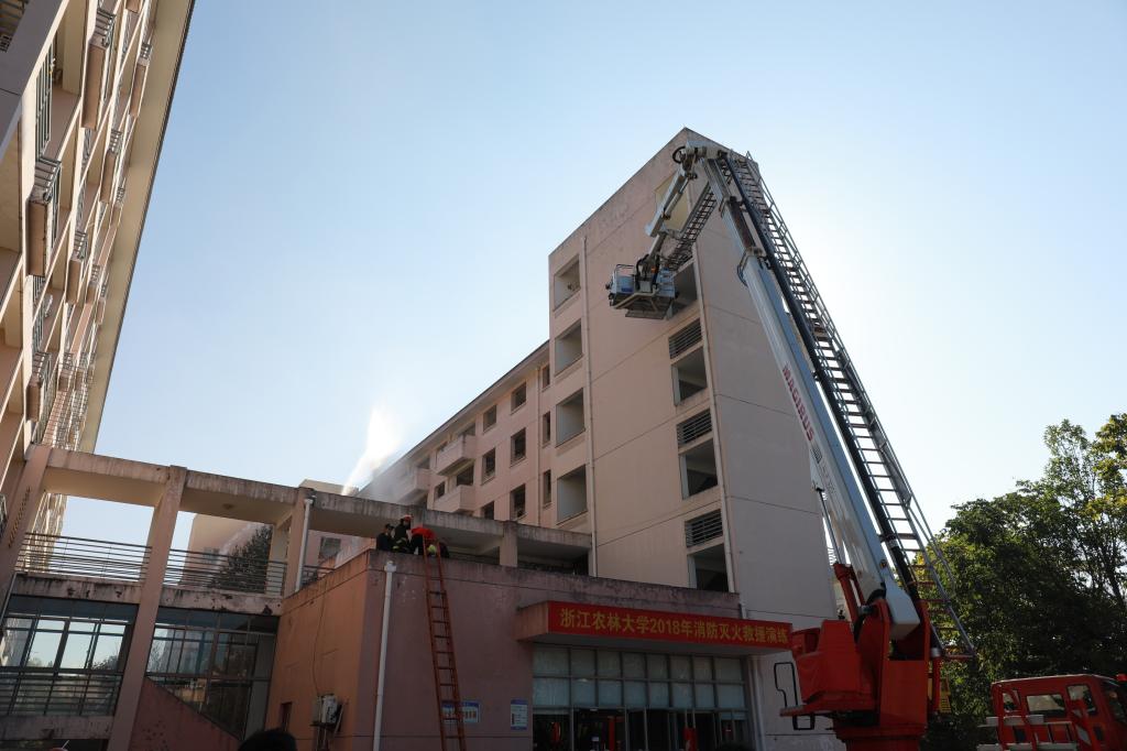 11月9日上午,beat365平台唯一官网消防灭火救援演练在东湖校区A区学生公寓举行。副校长王自勇,临安区副区长、公安分局局长黄希和,学校相关职能部门、后勤集团负责人,临安区消防大队、应急办、综治办、安监局和消安委等部门负责人出席启动仪式,并指导观摩演练活动。