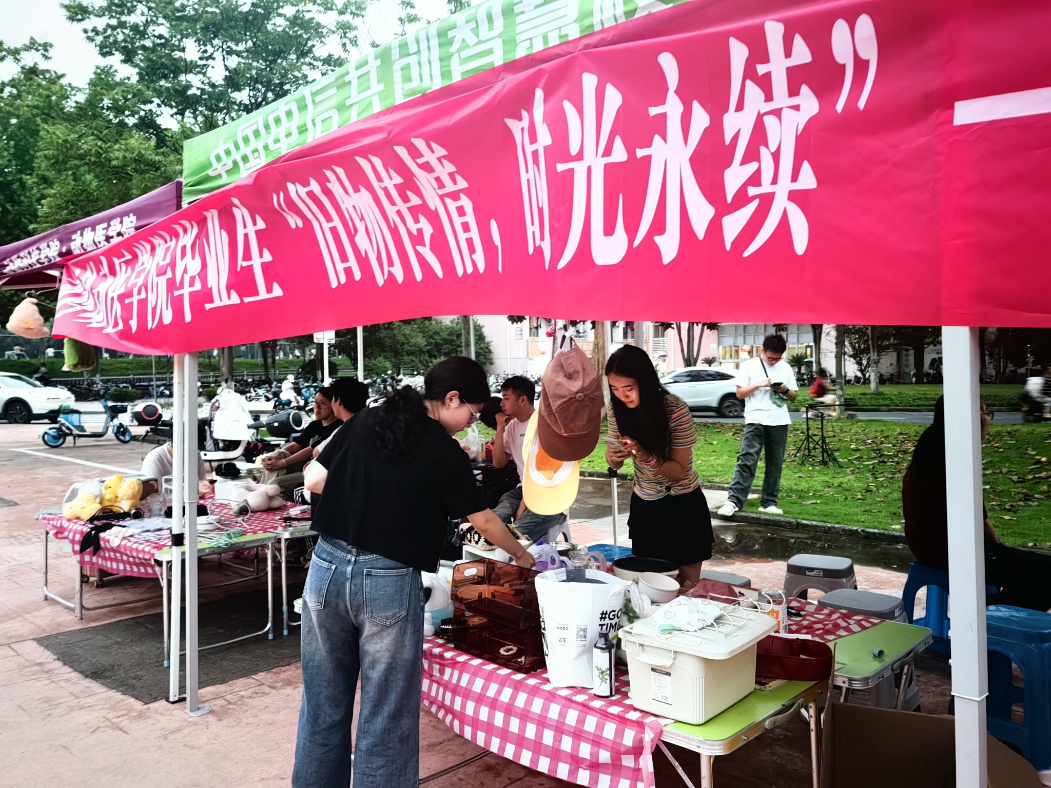 又到一年的毕业季。这两天,在beat365平台唯一官网东湖食堂门口的广场上,该校动科动医学院的应届毕业生们,以寝室等为单位在低价出售或赠送各种二手生活学习用品:2元一把热水壶、3元一个插座、10元一个吹风机,更有一大批二手书籍、晾衣架、文件夹等无偿赠送。一个个摊位,吸引了不少低年级学生。