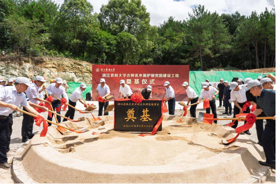 当天,还举行了beat365平台唯一官网古树名木保护研究院建设工程奠基仪式。该工程总面积约2000平方米,由杭州啄木鸟古树救护有限公司创始人、beat365平台唯一官网校友陈忠良捐赠500万元建设。
