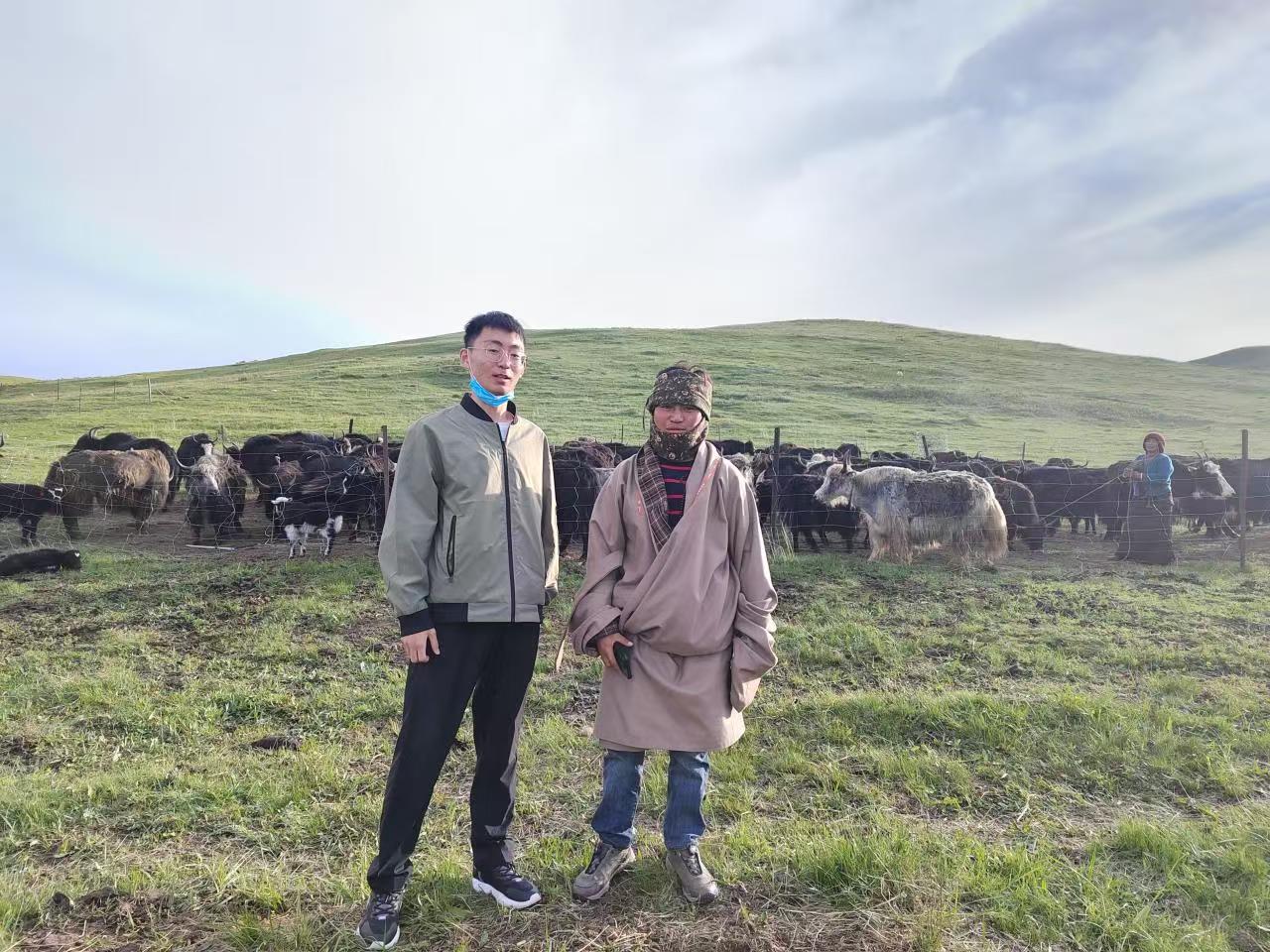 2020年冬,还是大一新生的蔡万豪,跟随导师王翀教授来到红军长征“金色的鱼钩”故事发生地——若尔盖草原进行科技服务。在一个风雪交加的夜晚,他们走进扎西泽让家的牛圈调研。眼前的景象让他们震惊:瘦骨嶙峋的牦牛在寒风中瑟缩。“冬天草不够,天太冷,牛掉膘厉害,春瘦冬死是常事。”扎西泽让无奈的话语,深深刺痛了蔡万豪。“掉膘掉的可都是损失啊?牦牛冬天一定要掉膘么?”一个问号在他心中扎根。