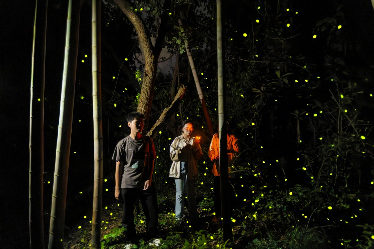 正值盛夏。在四川省天台山科普馆、青神竹里荧光艺术馆等地,每当夜幕降临,草丛间的一抹抹明亮的荧光开始悄然闪烁。这点点荧光吸引了游客,点亮了“夜空经济”。