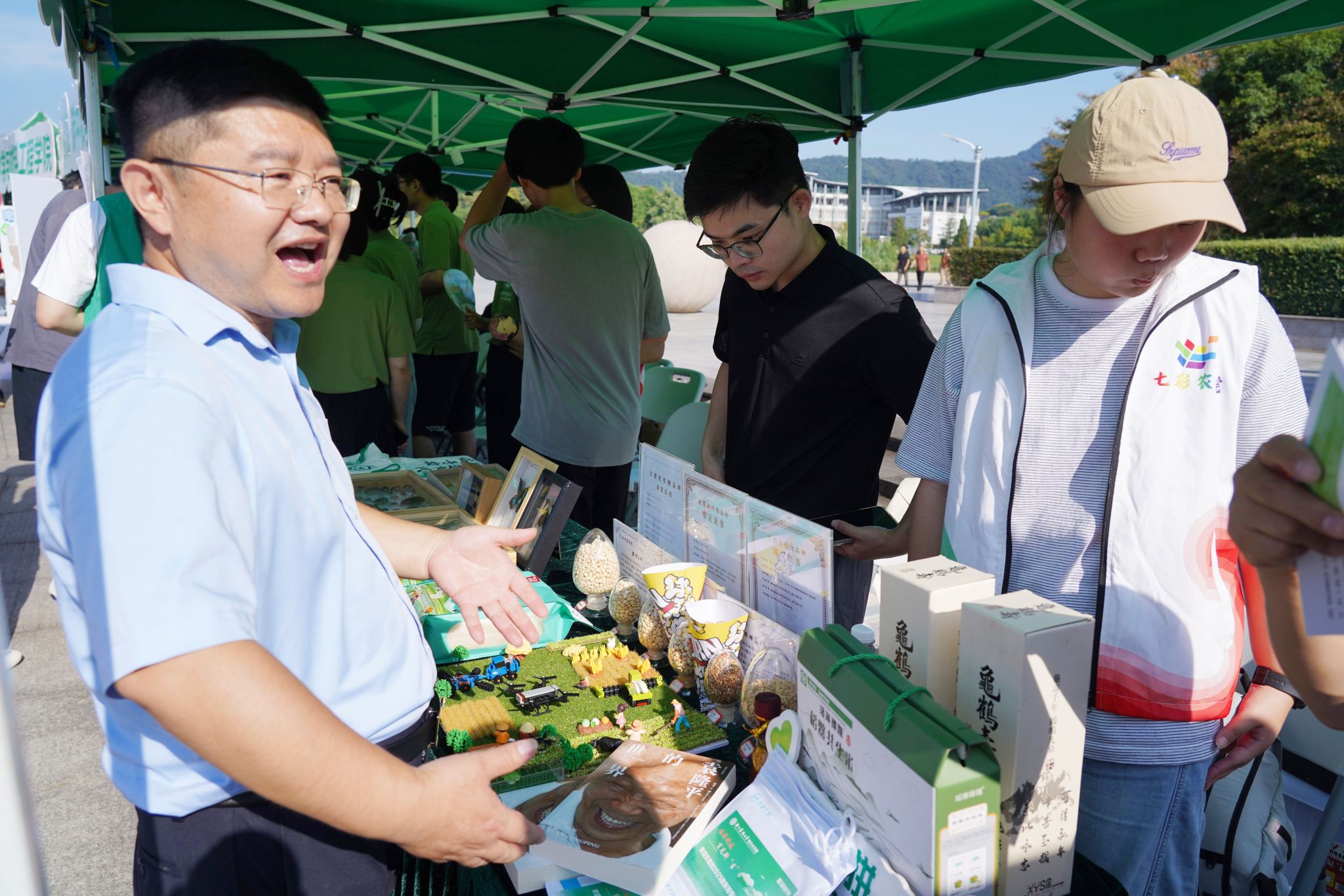 师生自主研发的“农研呵护”面膜、教师团队开发的山核桃仁、学生团队制作的“会长出树苗”的种子纸、食品类专业学长烤制的饼干与酿造的啤酒、茶学类专业师生研发的抹茶冰淇淋……