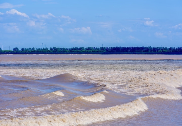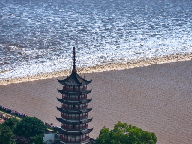 1957年,毛泽东到海宁盐官七里庙观看澎湃汹涌的“钱江秋涛”时,留下“千里波涛滚滚来,雪花飞向钓鱼台”豪迈诗篇。时至今日,“干在实处、走在前列、勇立潮头”更是被写进了“浙江精神”。如今,在每年农历八月十八前后,钱塘江观潮盛况空前,八方游客汇聚钱塘江畔,一睹“壮观天下无”的涌潮胜景。