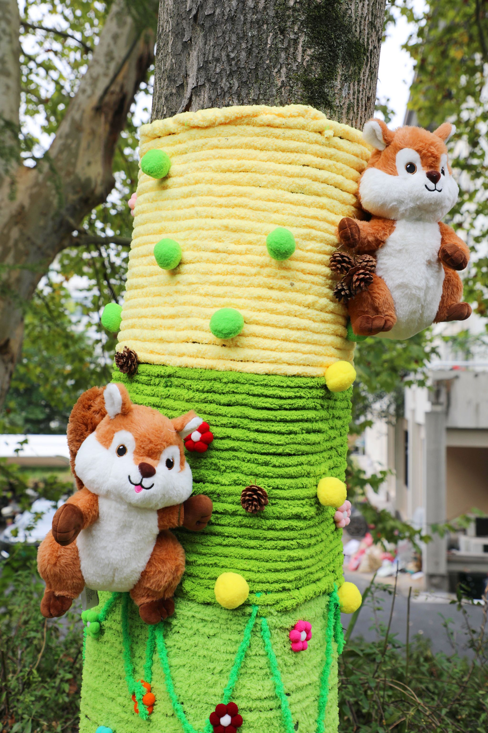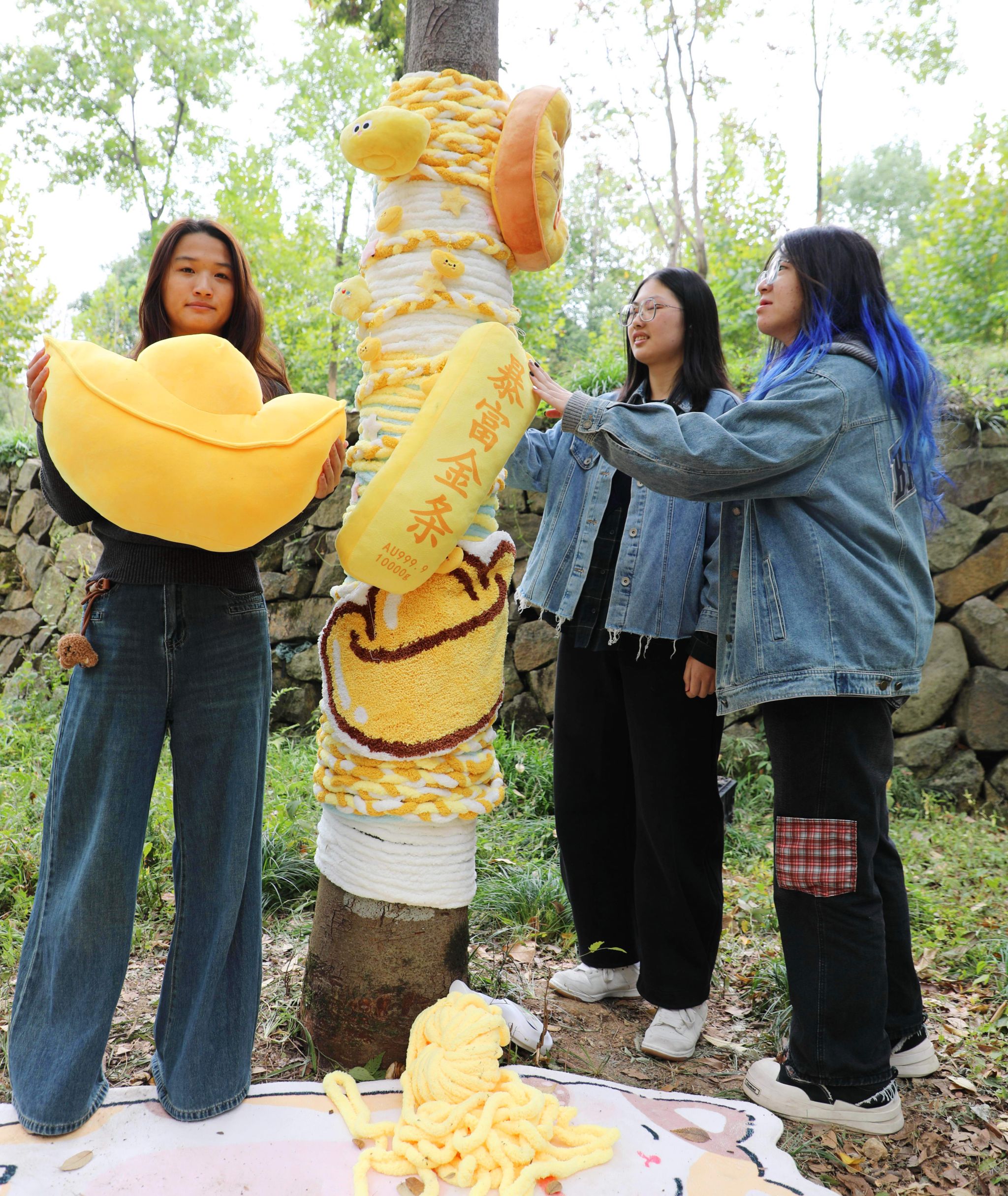 为了协同创作出更好的实践作品,环境设计专业的学生们分成多个小组,他们在校园里开展了“装饰我的树”项目。根据老师安排,他们通过为指定树木进行软性装饰,亲身体验如何利用低干预、可逆的“软性要素”来主动定义空间,将抽象的空间感知转化为具体的空间塑造。