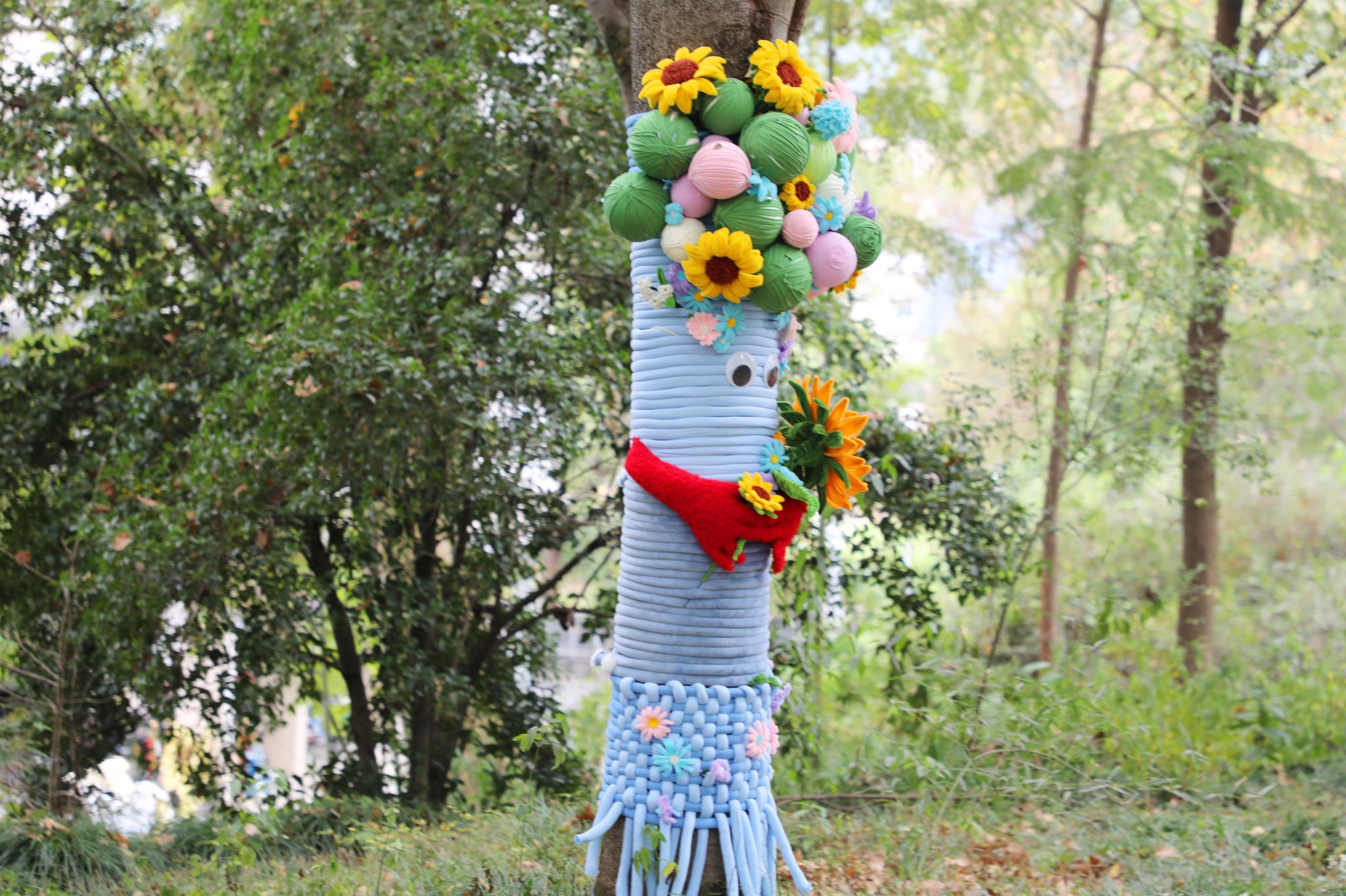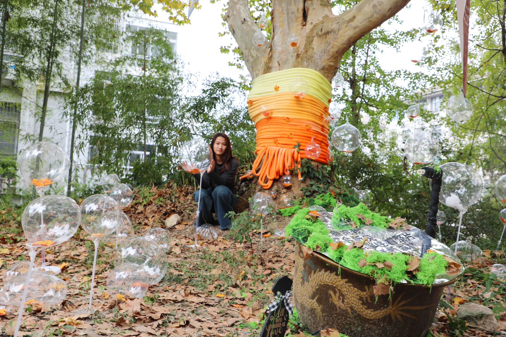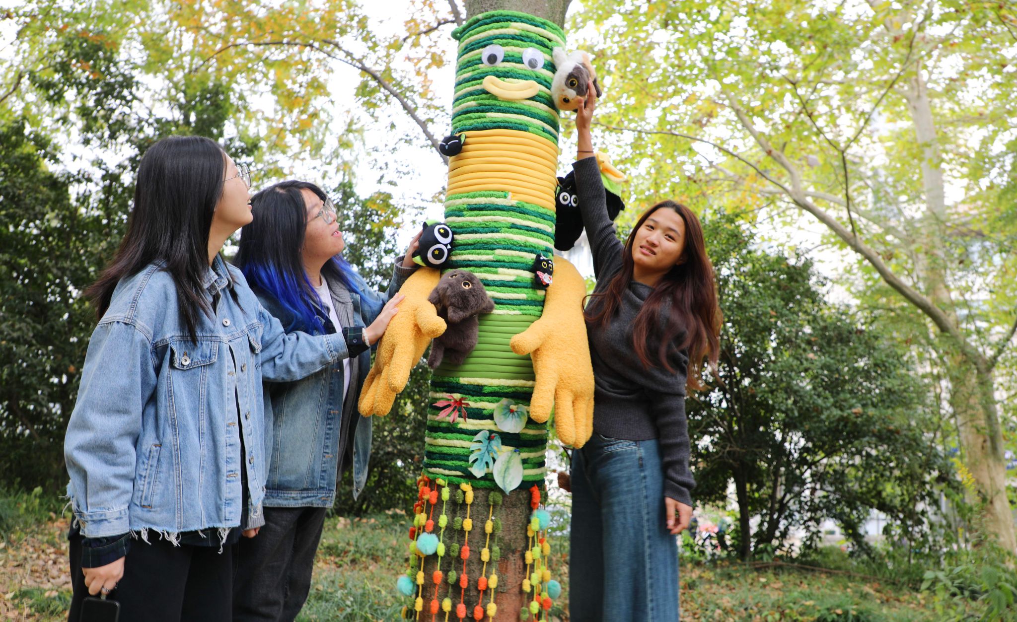 这些大树的“漂亮衣裳”,是该校环境设计专业学生设计制作的,也是他们的专业基础课《空间建构》的课程作业。