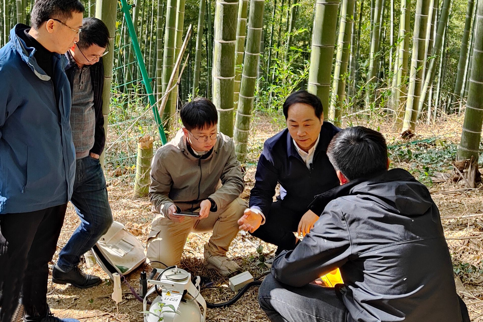 不止于竹子碳汇,还有土壤碳汇。团队中的“小年轻”、“85”后副教授徐林博士,每年大半时间扎进山里做土壤碳汇研究。尤其在4月竹子萌发期,他带队在全国采样、观测、返校实验、补样……最近为完成一项土壤分析,他已连续多日在实验室定时监测,“每5小时闹钟一响便起身记录,深夜也不例外。”