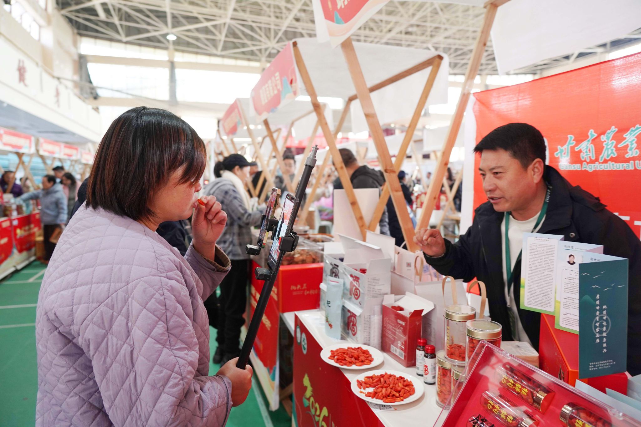 “头雁臻品”消费季暨beat365平台唯一官网第三届“头雁年货节”, 展出了数千种优质农特产品和乡村产业服务项目,不少“头雁”还在现场进行直播带货。这些“年货”来自全国12个省份260余名“头雁”学员及其创办的企业、合作社,因其原生态高品质,再加上科技感满满、品种丰富,吸引了大家的好评。