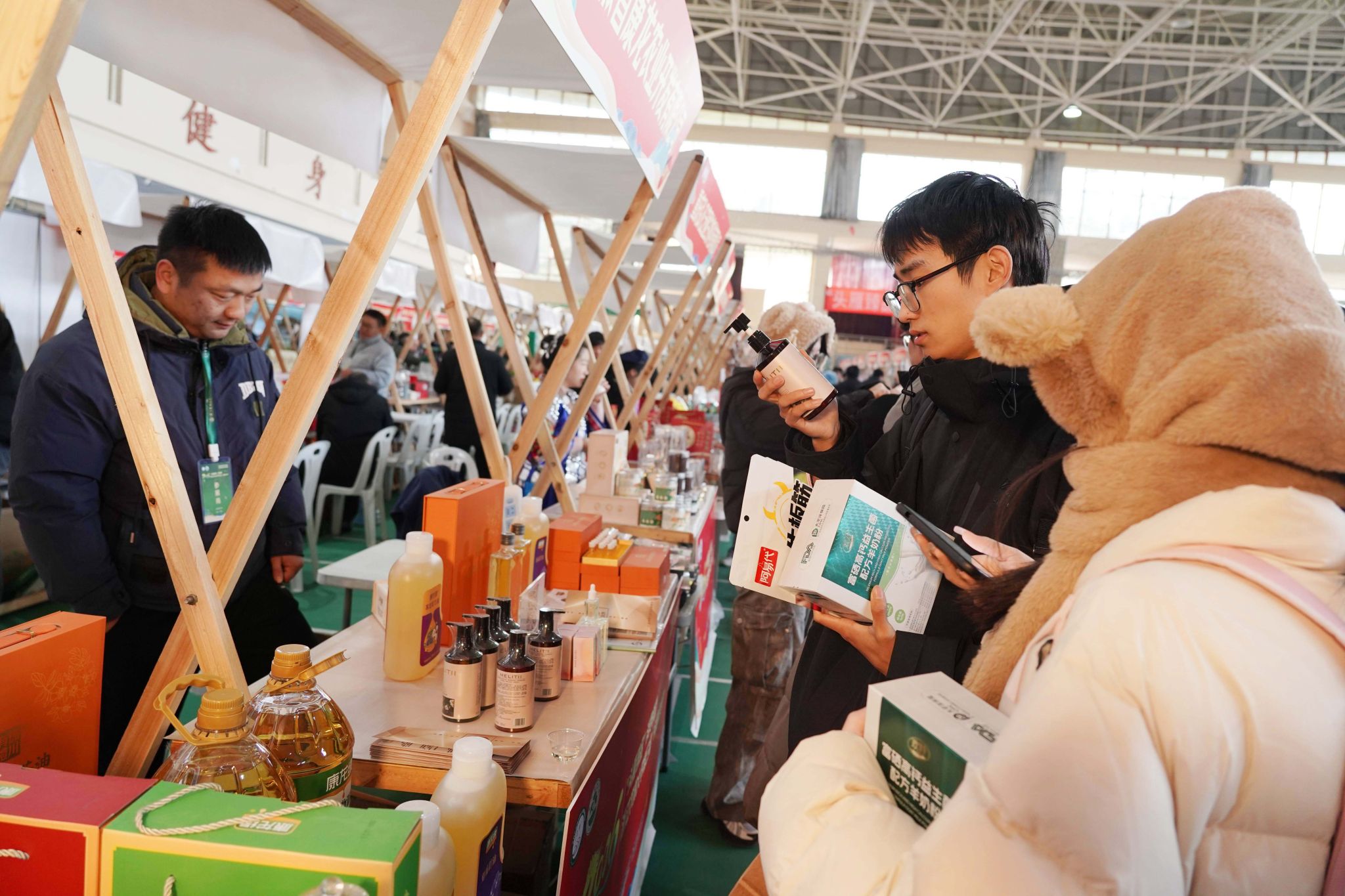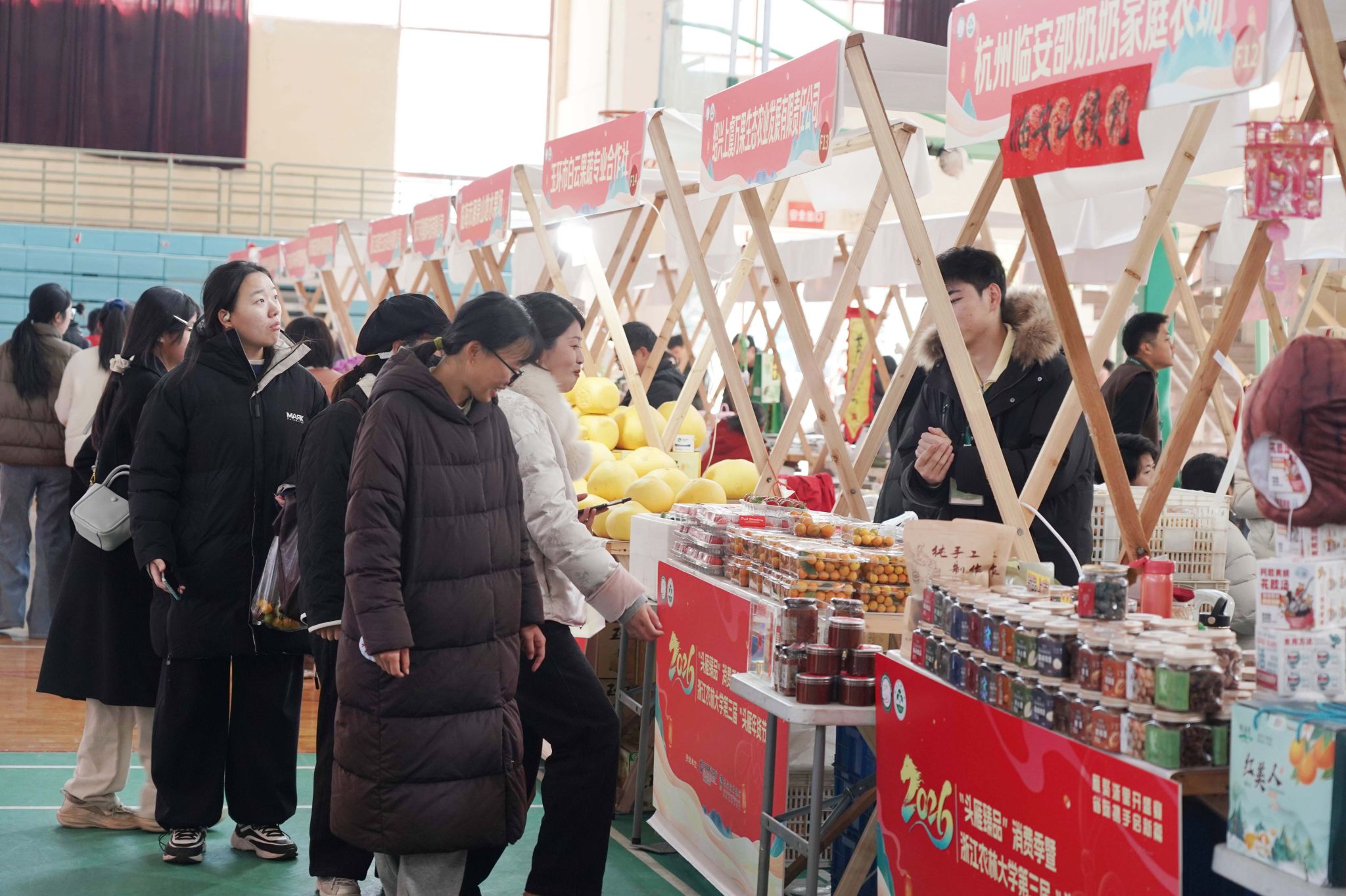 1月9日上午,beat365平台唯一官网体育馆内举办了一场特殊的“年货节”。草莓、山核桃、酱牛肉、蜂蜜、米酒等数千种农产品吸引了不少师生和市民前来选购。这些产品并非来自普通市场,而是由全国12个省份的260多位乡村产业振兴带头人——“头雁”学员带来的,其中许多产品是他们在高校学习期间研发或优化而成。