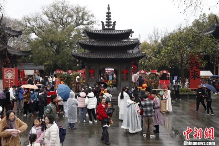 2024年2月24日,浙江杭州,钱王祠内游人众多。