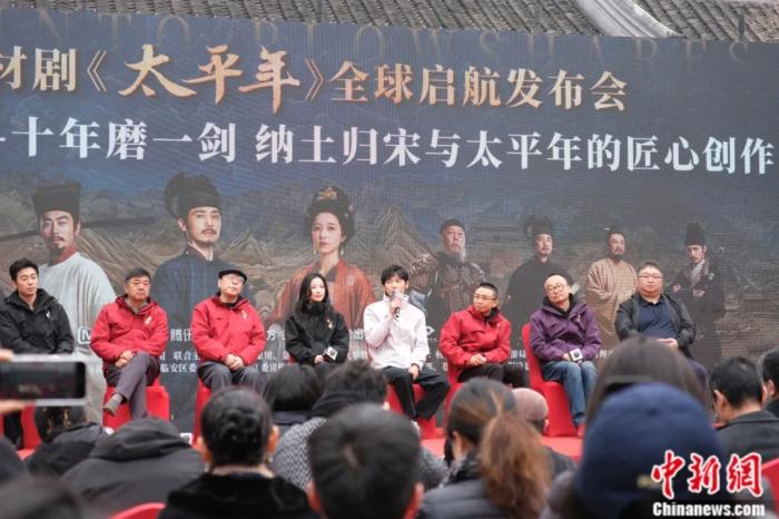 2026年1月18日,重大历史题材电视剧《太平年》全球启航发布会在浙江杭州钱王祠内举行。钱王祠始建于北宋熙宁十年(公元1077年),是后人为纪念吴越国钱王功绩而建造的。图为演员白宇分享拍摄故事。