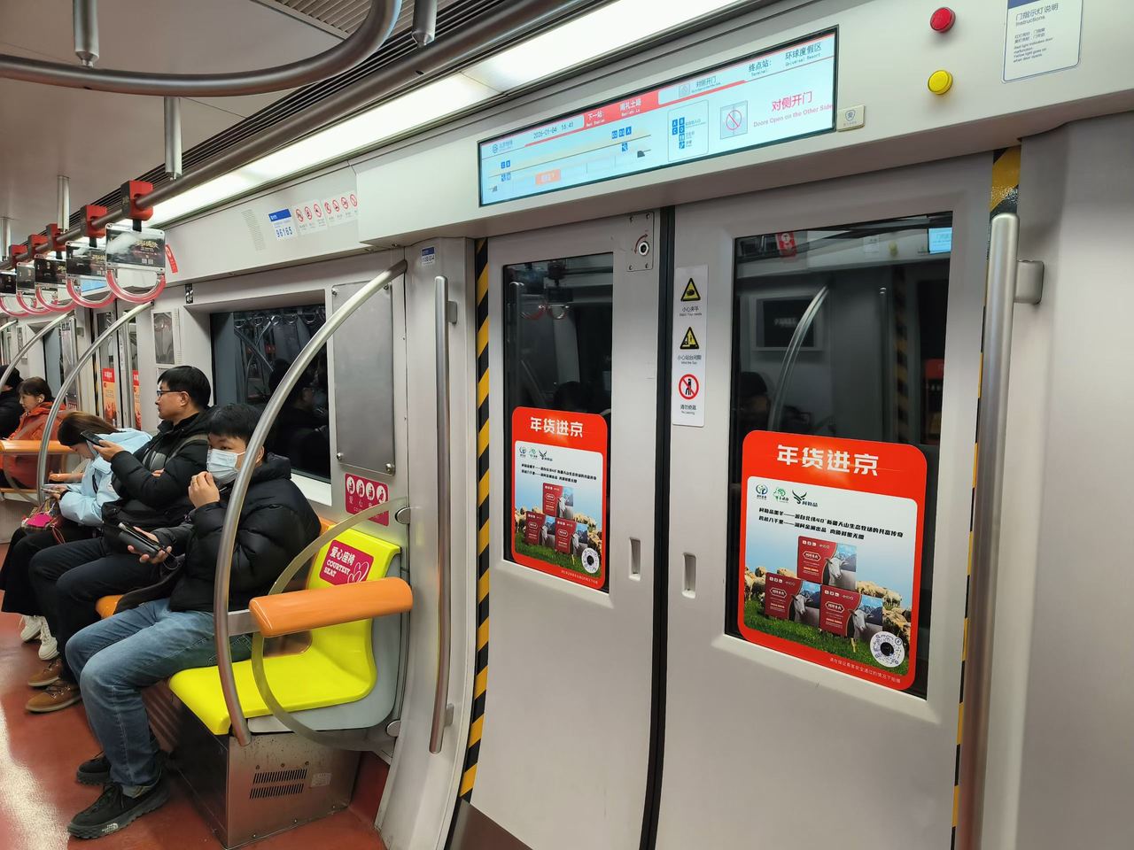 北京地铁1号线“年货进京”专列上的“柯勒品”黑羊广告。
