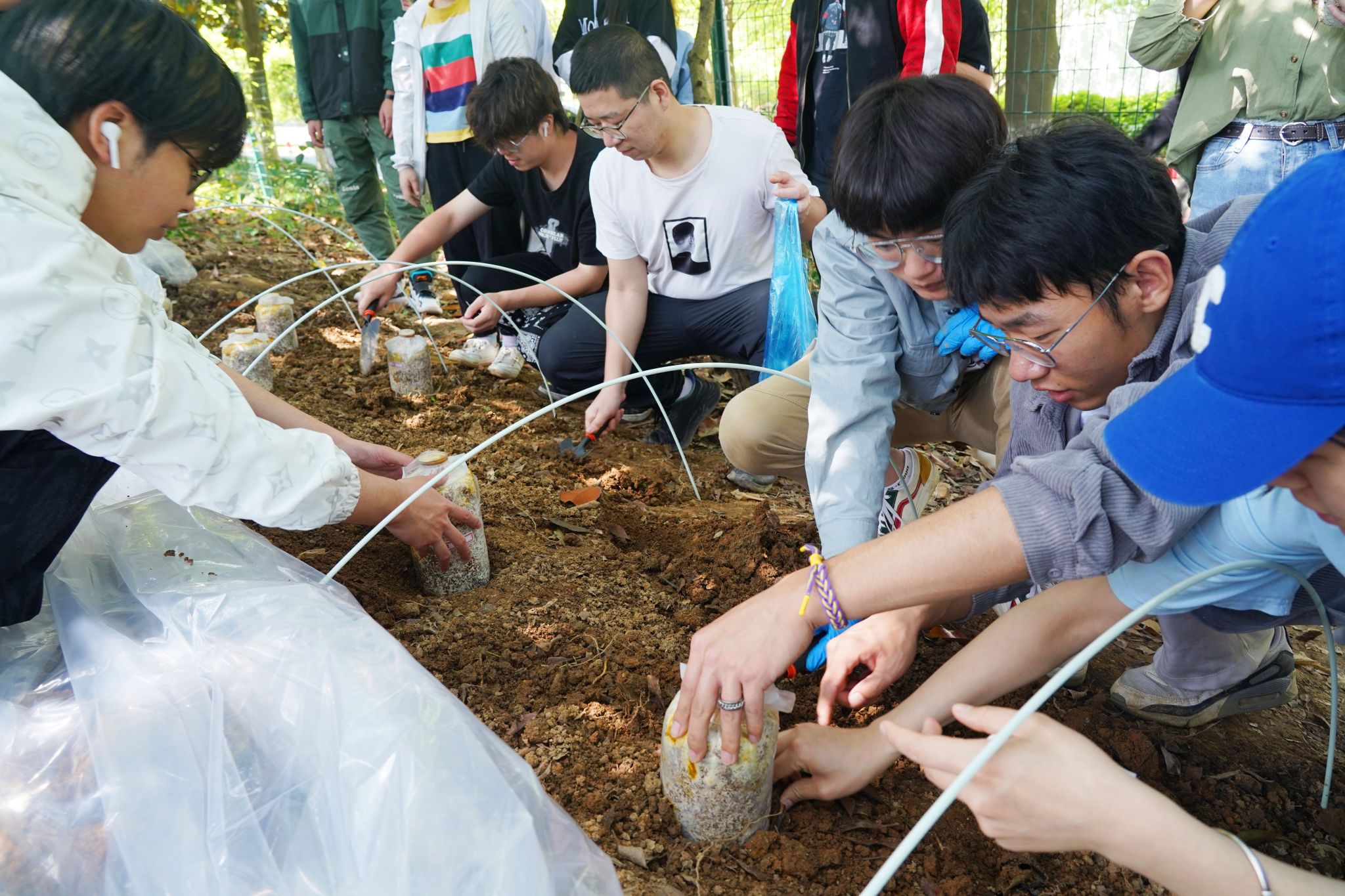 选课的时候,很多学生都很兴奋,但真正开始种菇后,大家才知道种蘑菇远非挖个坑埋下菌包那么简单。锄地、下种、覆土都只是“开胃小菜”,11月之后长达8个星期的每日浇水、观察、记录才是“重头戏”。