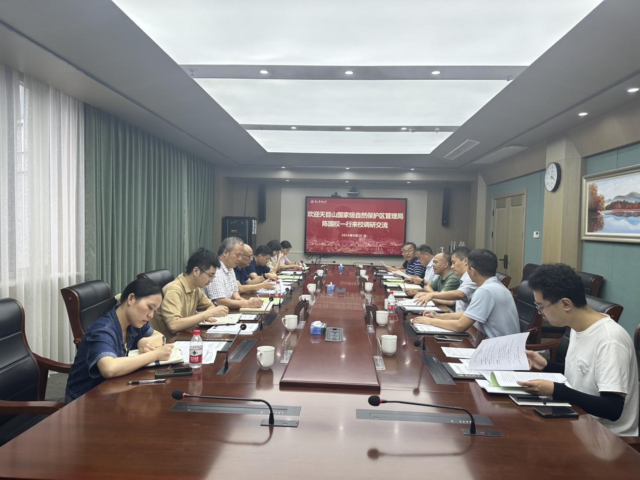 9月10日,天目山国家级自然保护区管理局局长陈国权一行来校交流座谈,科技处处长柳丹、林生院相关负责人及相关学科教师参加。