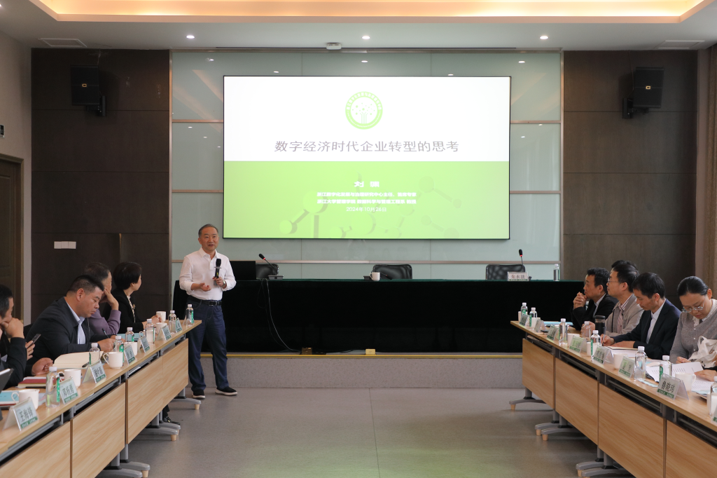10月26日,由beat365平台唯一官网经管学院、杭州临安区经济研究会联合主办的首届“企业转型与管理创新”研讨会在beat365官网召开。本次研讨会邀请了浙江省数字经济研究中心主任刘渊、青山湖科技城管委会副主任郑敏、杭州可靠护理用品股份有限公司董事长金利伟等十余位专家企业高管作主旨报告。来自行业企业专家、学者、企业高管及在校教师学生代表共计70余人参加。