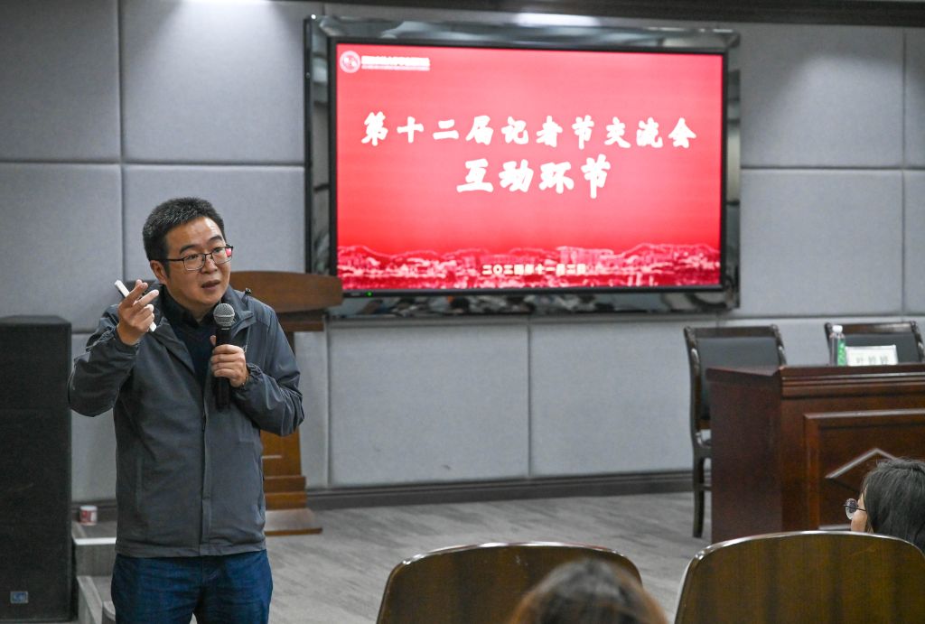 交流会上,王建辉围绕“读新闻 写新闻 让新闻为‘我’所用”的主题,详细介绍了新闻稿的“策采编”一体化,分享了消息、通讯的写作方法。王建辉表示,采访要有好问才能有好答,新闻写作最好从身边着手,要“见天地,见众生,然后才能更好地见自己”。
