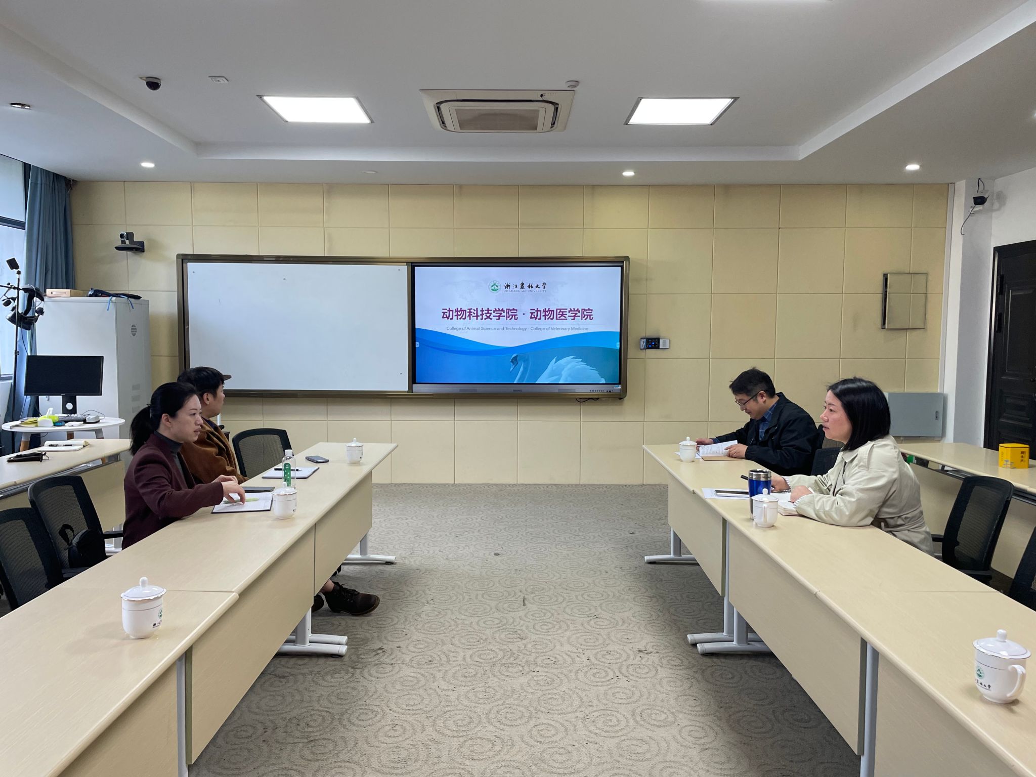11月11日,浙江青少年事务所副所长鲍倩倩一行到动科动医学院交流,洽谈合作事宜。