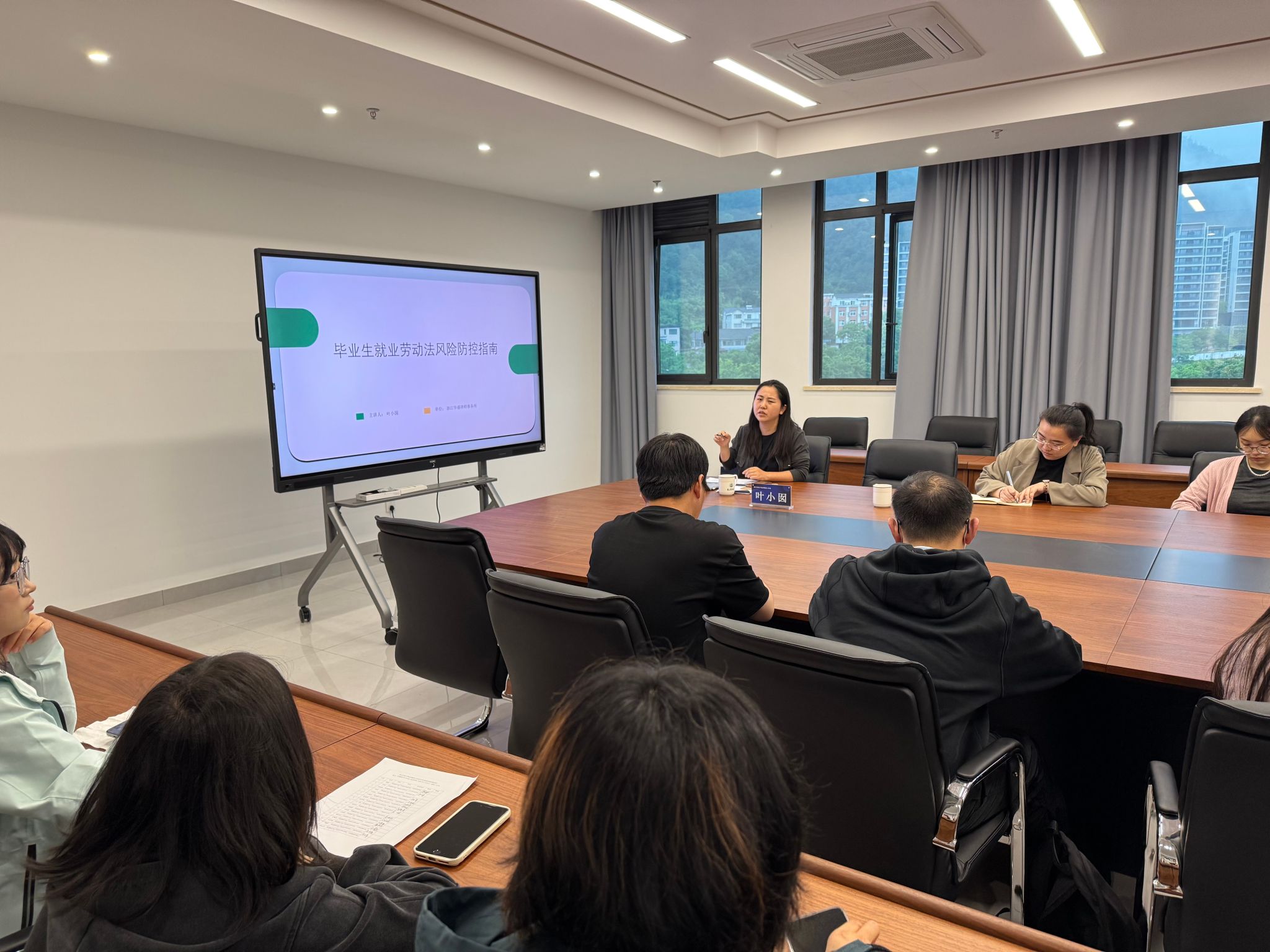 叶小囡律师聚焦大学生就业法律需求,围绕劳动合同签订要点、试用期规定、工时与加班和社会保险、调岗与降薪、劳动关系的解除与终止、保密与竞业六个方面展开深度讲解。她结合典型案例,深入剖析了求职应聘中常见的“试用期陷阱”“薪资争议”“竞业限制条款”等法律问题,并针对实习实践、创新创业等场景提供了实用建议。王政刚律师重点围绕大学生就业刑事犯罪风险展开讲解,以鲜活的案例对“知识产权侵权”“挂名法定代表人”等违法犯罪行为进行警示教育,提醒大学生在就业过程中提高警惕。律师强调,法律知识是职业发展的“护身符”,提前掌握法律工具,既能规避风险,也能在权益受损时高效维权。