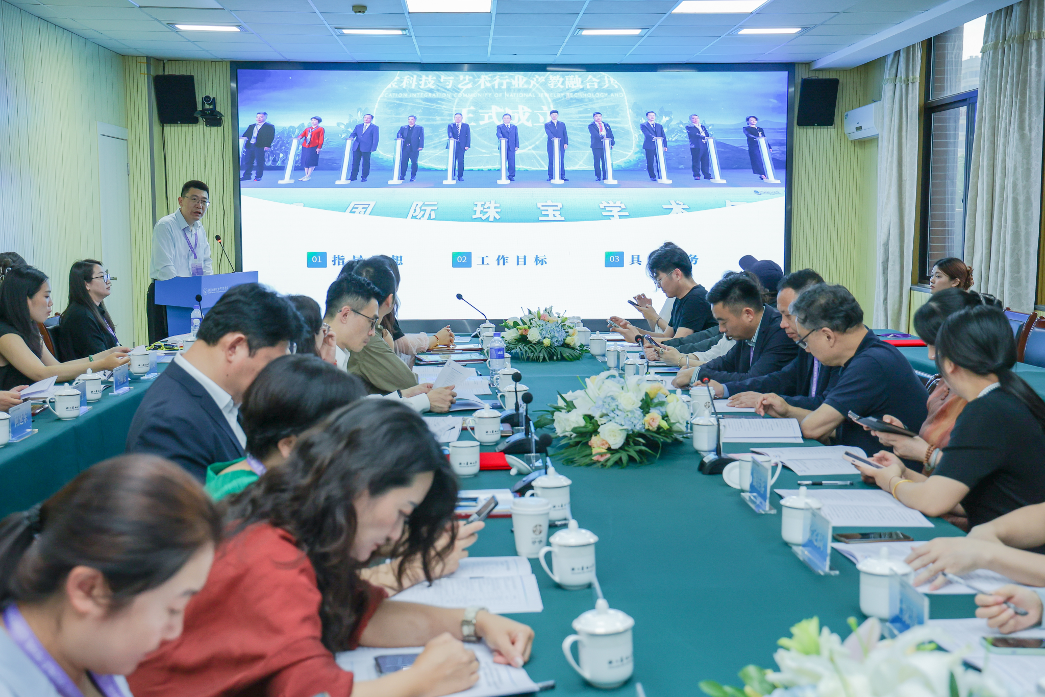 5月20日,全国珠宝科技与艺术行业产教融合共同体第二次理事会会议在暨阳学院举行。本次会议聚焦珠宝科技与艺术的创新,共同探讨珠宝领域国际合作与交流。暨阳学院党委书记洪昀,中国地质大学(武汉)珠宝学院副院长张荣红,中国轻工珠宝首饰中心教育培训处副处长魏佳蓉,深圳珠宝博物馆馆长、深圳市罗湖区黄金珠宝产业链党委书记王振等来自全国高校、行业协会及龙头企业的代表出席会议。