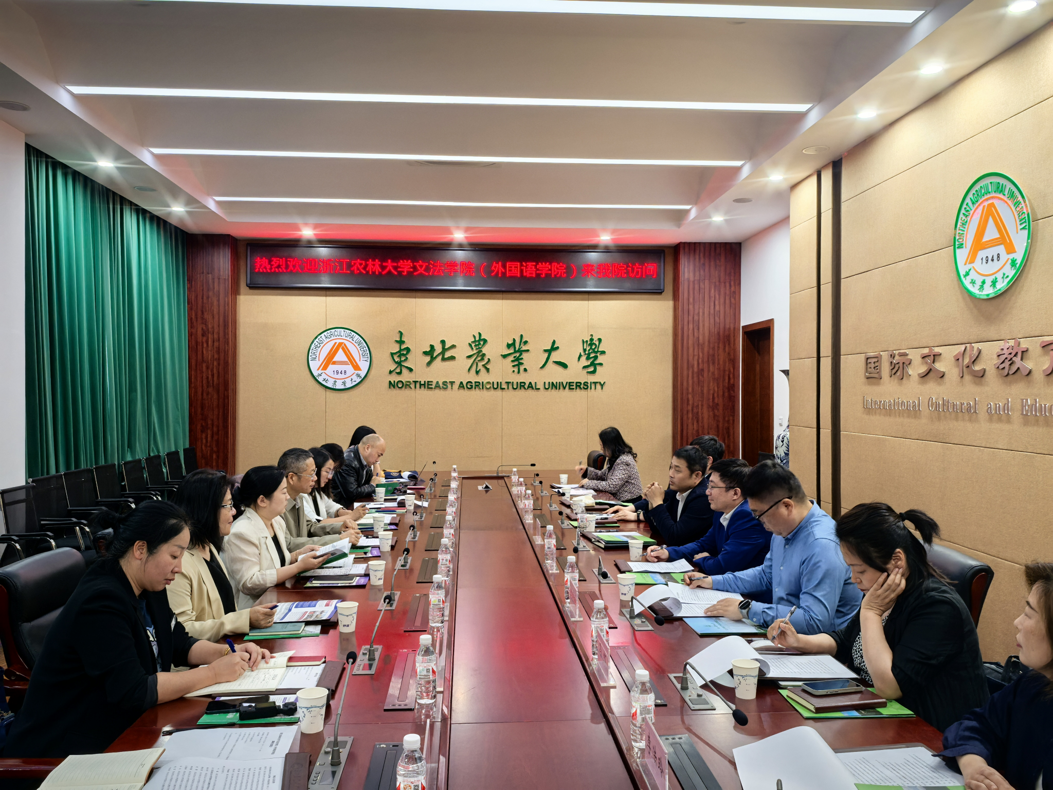 5月26日,文法学院院长鲁可荣带领班子成员、学科负责人、有关硕士点负责人赴东北农业大学考察调研。