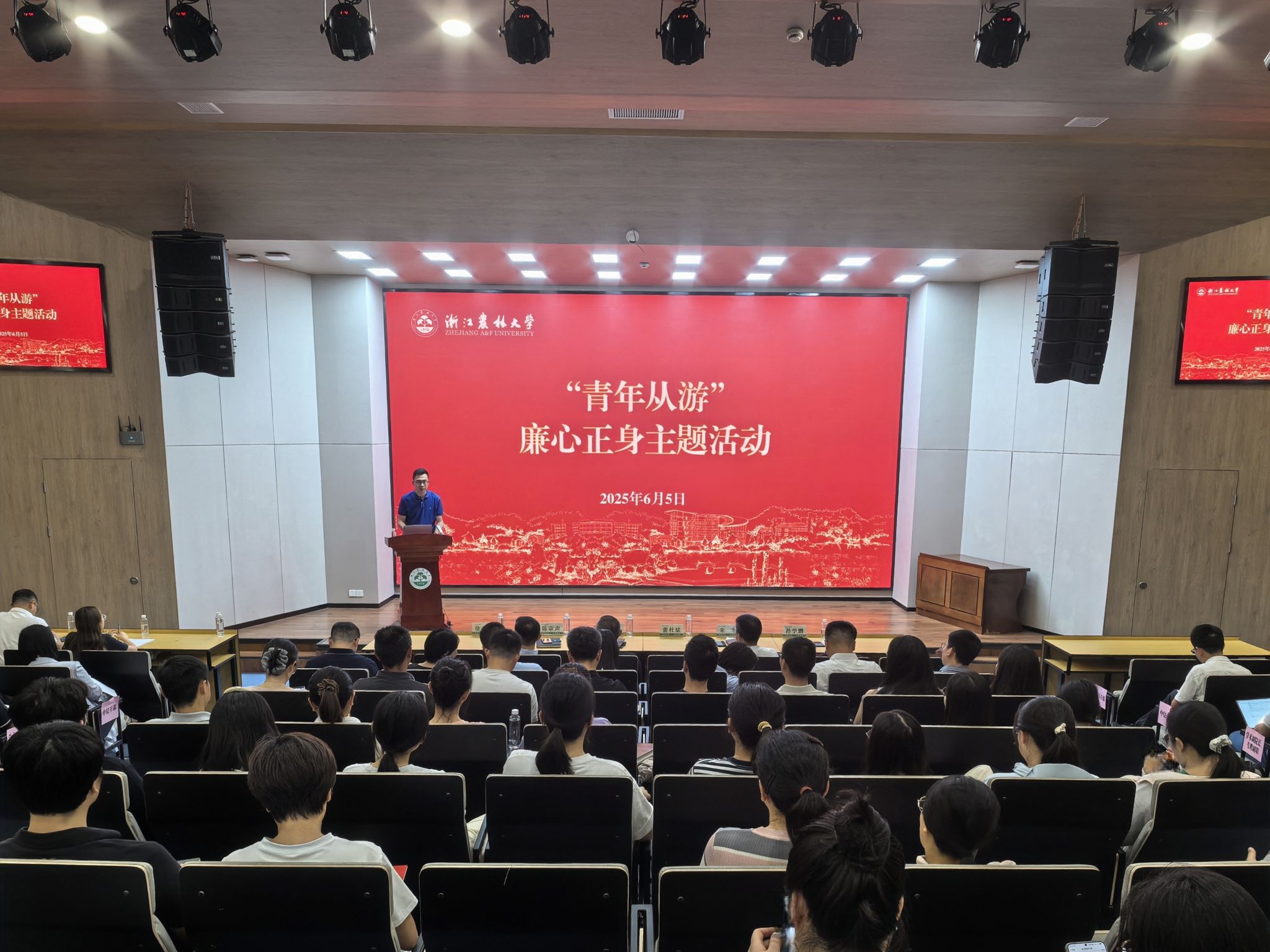 6月5日,beat365平台唯一官网“青年从游”廉心正身主题活动在学三国际报告厅举行。全校年轻中层干部、学术副院长、专聘副职、机关青年教职工等参加活动。活动由组织部部长、统战部部长、机关党委书记董杜斌主持。