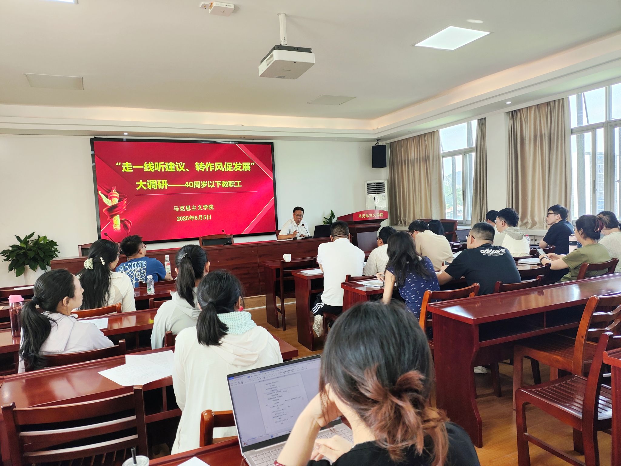 调研活动中,师生聚焦“教学改革创新、科研能力提升、学科内涵发展、青年教师发展、育人环境优化”等关键领域,展开热烈讨论。大家一致认为,一要创新教学方法,开发具有农林特色的思政课程资源库和案例集,增强思政课的针对性和吸引力。二要提升科研服务水平,强化科研团队组织化建设,加强与地方政府的协同合作,力争在阐释党的“三农”理论创新成果、总结乡村振兴实践经验、服务乡村治理现代化等方面产出高质量、有影响力的研究成果。三要推动学科内涵式发展,凝练研究方向,突出农林院校马院的特色与优势,在乡村治理、共同富裕、乡村文化建设等领域形成研究特色和学术品牌。四要加强高层次人才引培和团队建设,积极发挥老教师“传帮带”作用,着重加强青年教师培养,不断提升学科核心竞争力和社会影响力。五要优化育人环境,涵养优良院风学风,在硬件环境上,建议优化办公空间,改善学习研究条件,营造潜心育人、严谨治学的良好氛围。