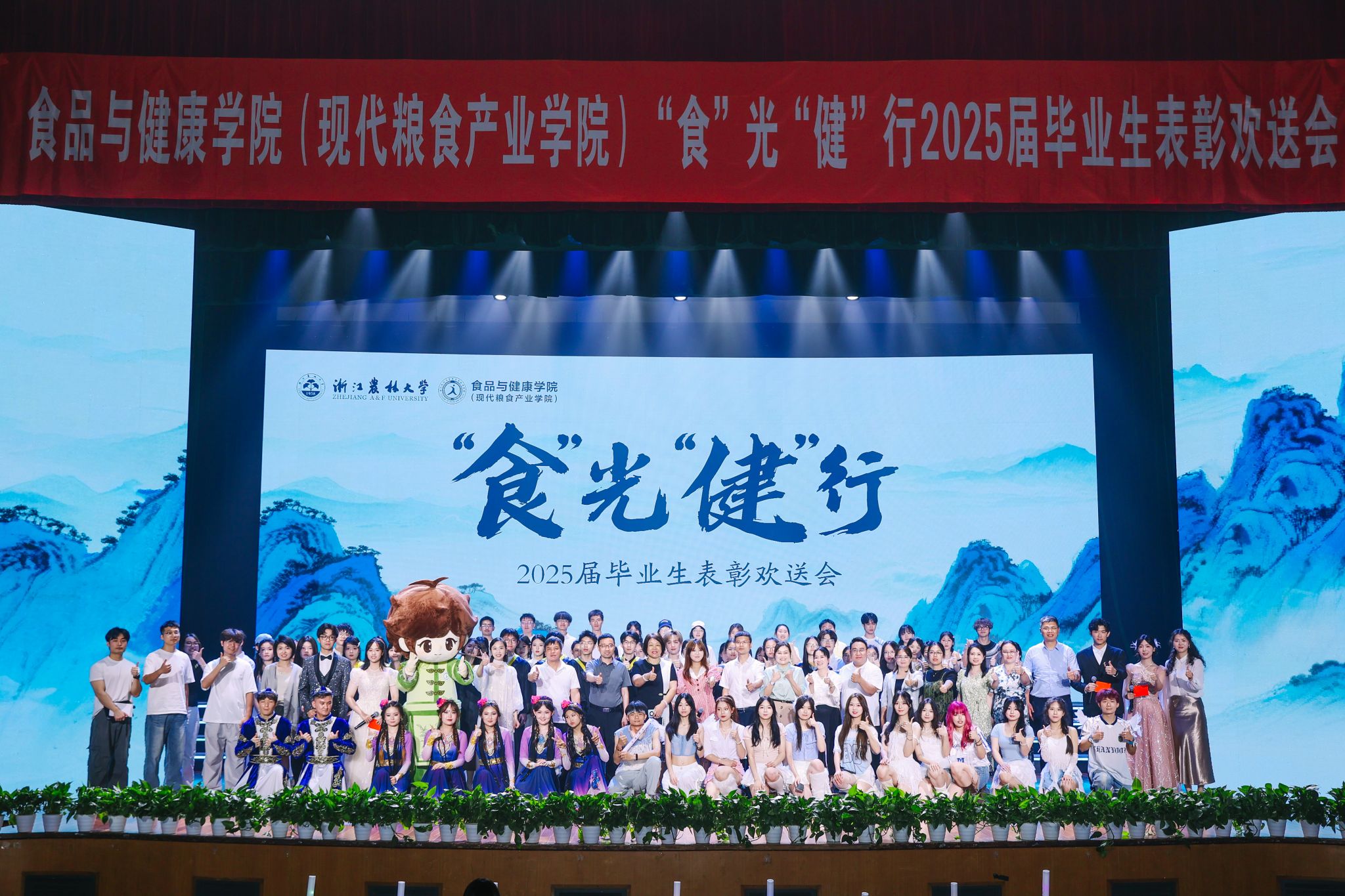 本次毕业生表彰欢送会,通过《五味·忆韶光》《草木·承华年》《金穗·致远方》三个篇章,以富有学科专业特色的节目和仪式,为毕业生串联起青春记忆与未来期许,并送上美好祝福。开场舞蹈《strategy》、歌曲串烧《师恩少年梦》、影子情景剧《我的大学》、器乐表演《光亮》、爵士舞串烧《forever》、诗歌朗诵《食健风华——远航》、思政微课《种子》、舞蹈《葡萄架下的篝火》……精彩纷呈的节目为这场充满朝气的青春盛宴点燃了绚烂夺目的火花。