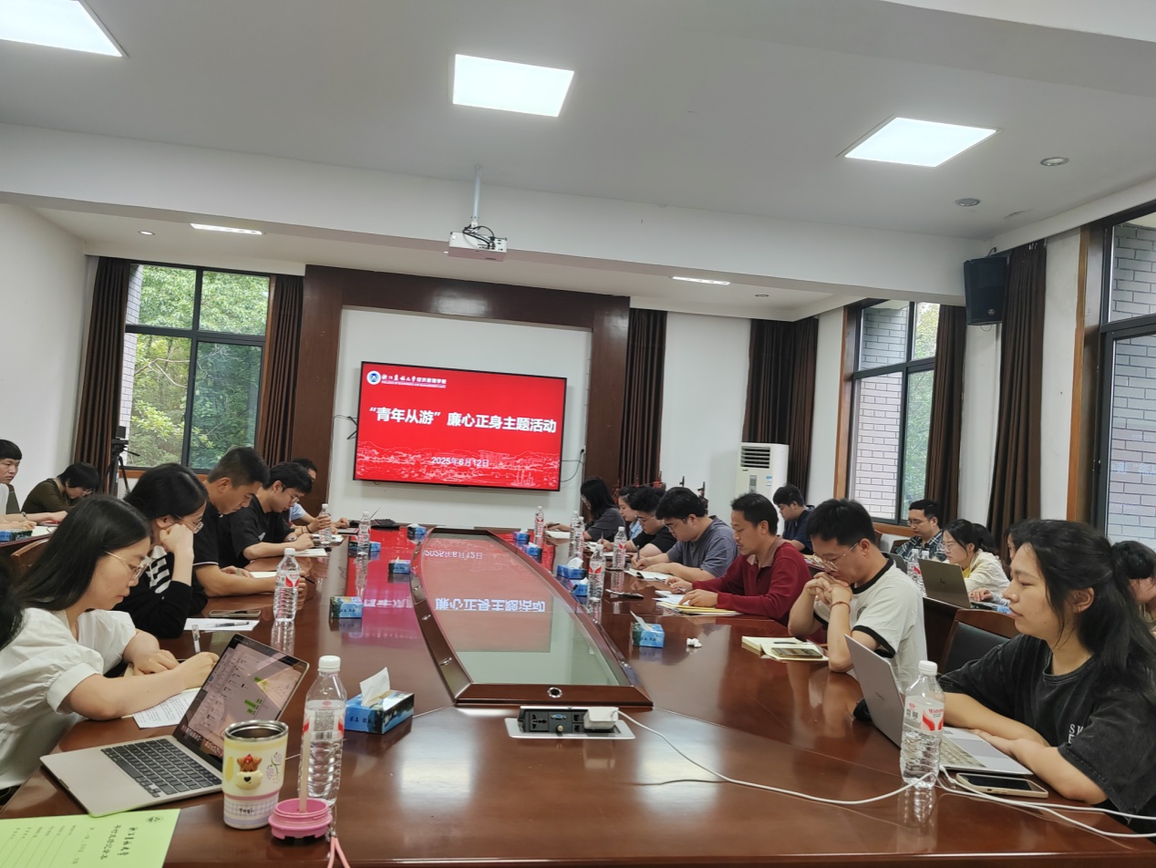 6月12日,经管学院开展“青年从游”廉心正身主题活动。活动由经管学院党委书记陈劲松主持,学院40周岁以下青年教师与管理人员参加。