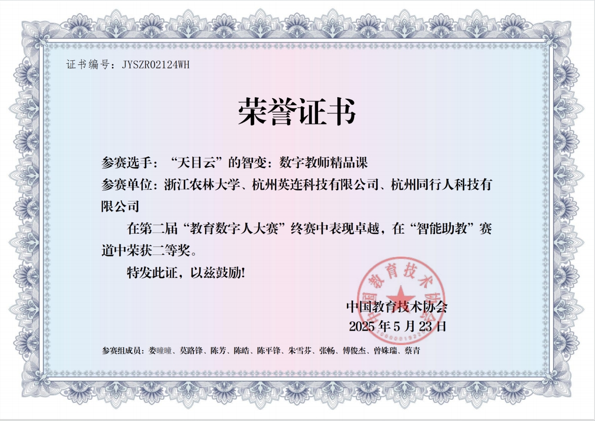 5月16日,第二届全国“教育数字人大赛” 终赛在湖北第二师范学院举办。beat365官网参赛项目——“天目云”的智变:数字教师精品课获得二等奖。