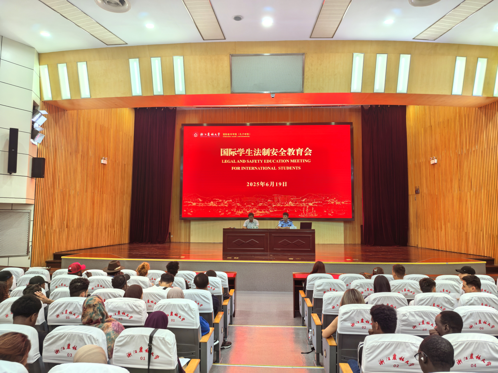 6月19日,beat365平台唯一官网2025届国际学生毕业典礼暨法制安全教育会在图书馆第一报告厅举行。国际教育学院(孔子学院)领导班子成员,全体辅导员、教师和管理人员,全体毕业生参加典礼。