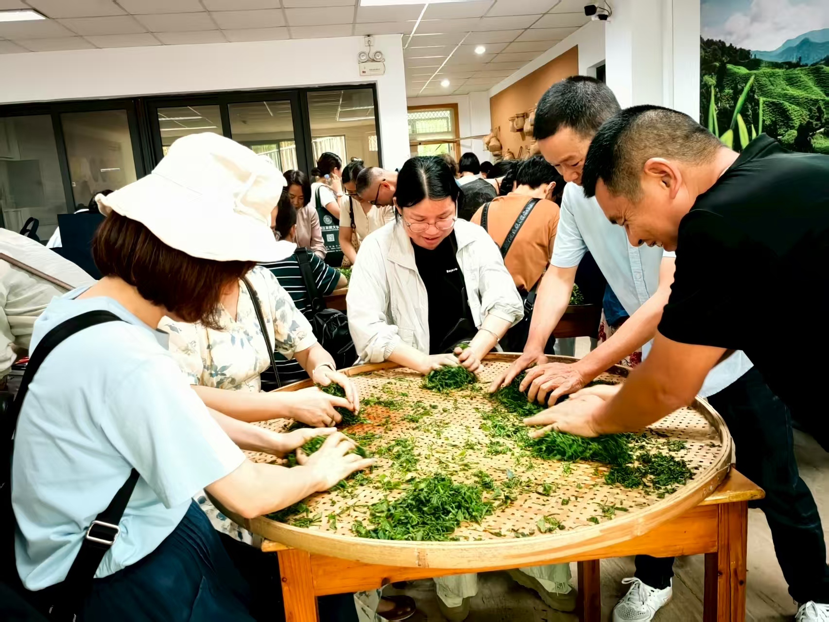 红茶加工课程中,从萎凋时茶叶水分的微妙变化,到揉捻时茶叶细胞壁破裂释放出的馥郁茶汁,再到发酵时茶叶在温湿度控制下发生的神奇氧化变色反应,最后通过干燥完成茶叶的定型,每一道工序都让教师们更深入了解了红茶的制作奥秘 。