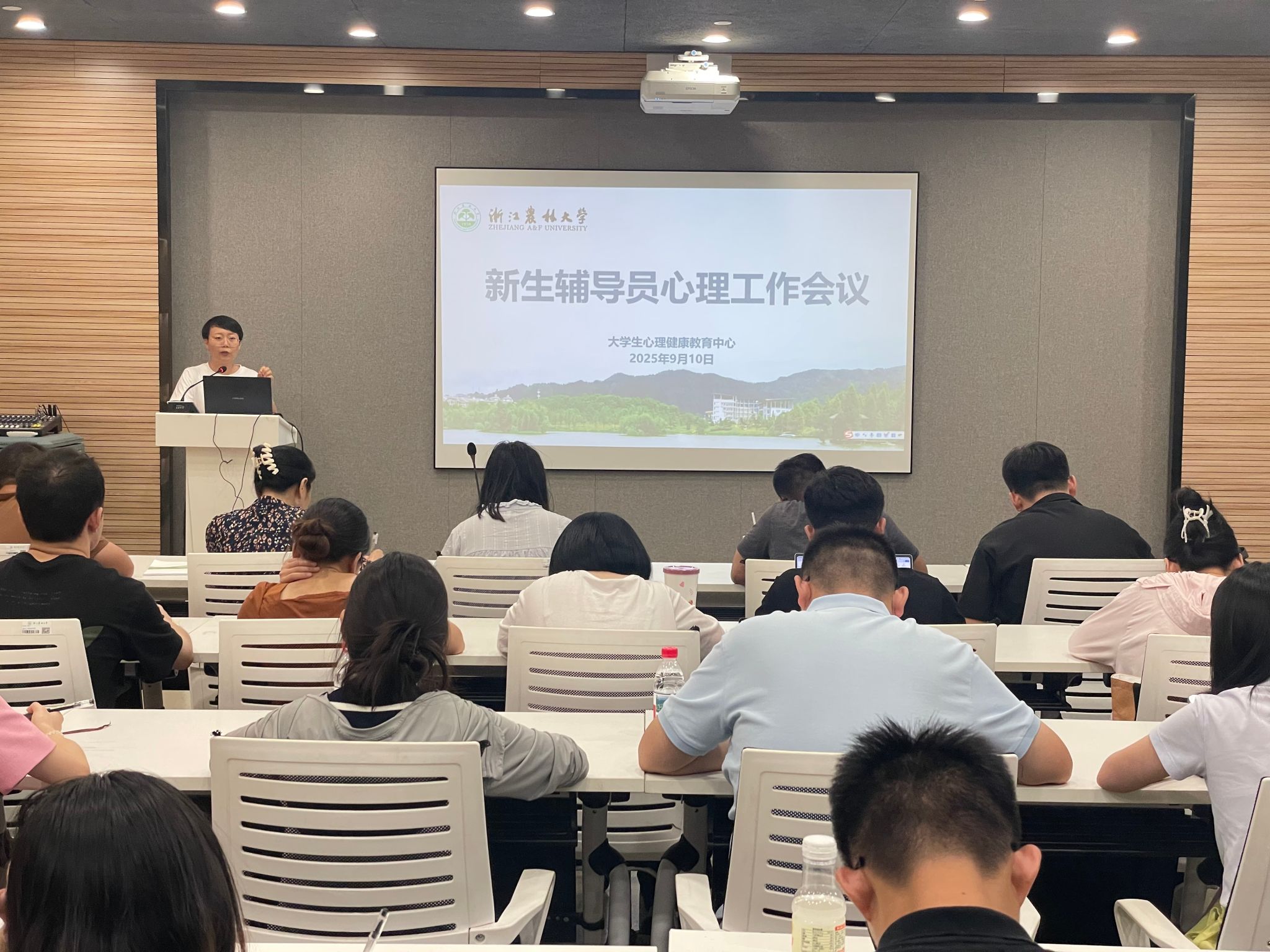9月10日下午,2025年新生辅导员心理会议在活动中心104-2-2顺利召开。会议由学工部心理中心主管主持,心理中心专职教师与40余名新生辅导员共同参会。